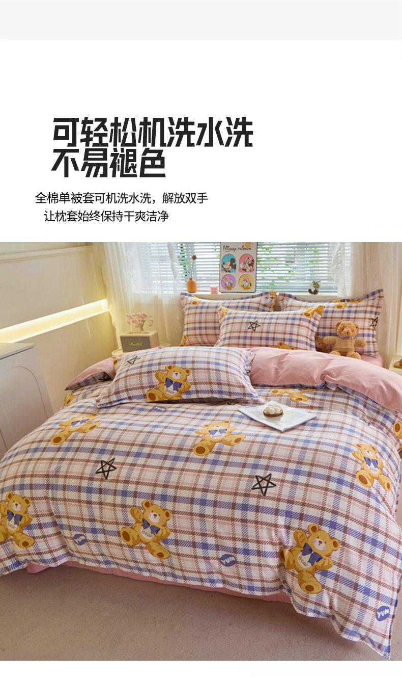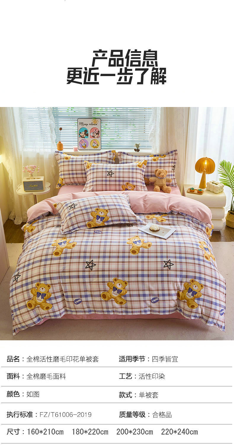 商品名称:牧笛缘家纺 2024新款全棉磨毛单被套 米拉熊-粉