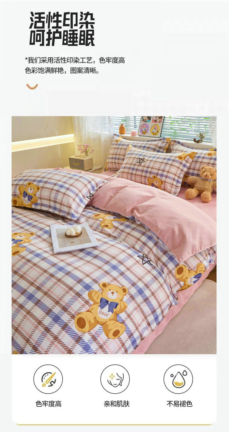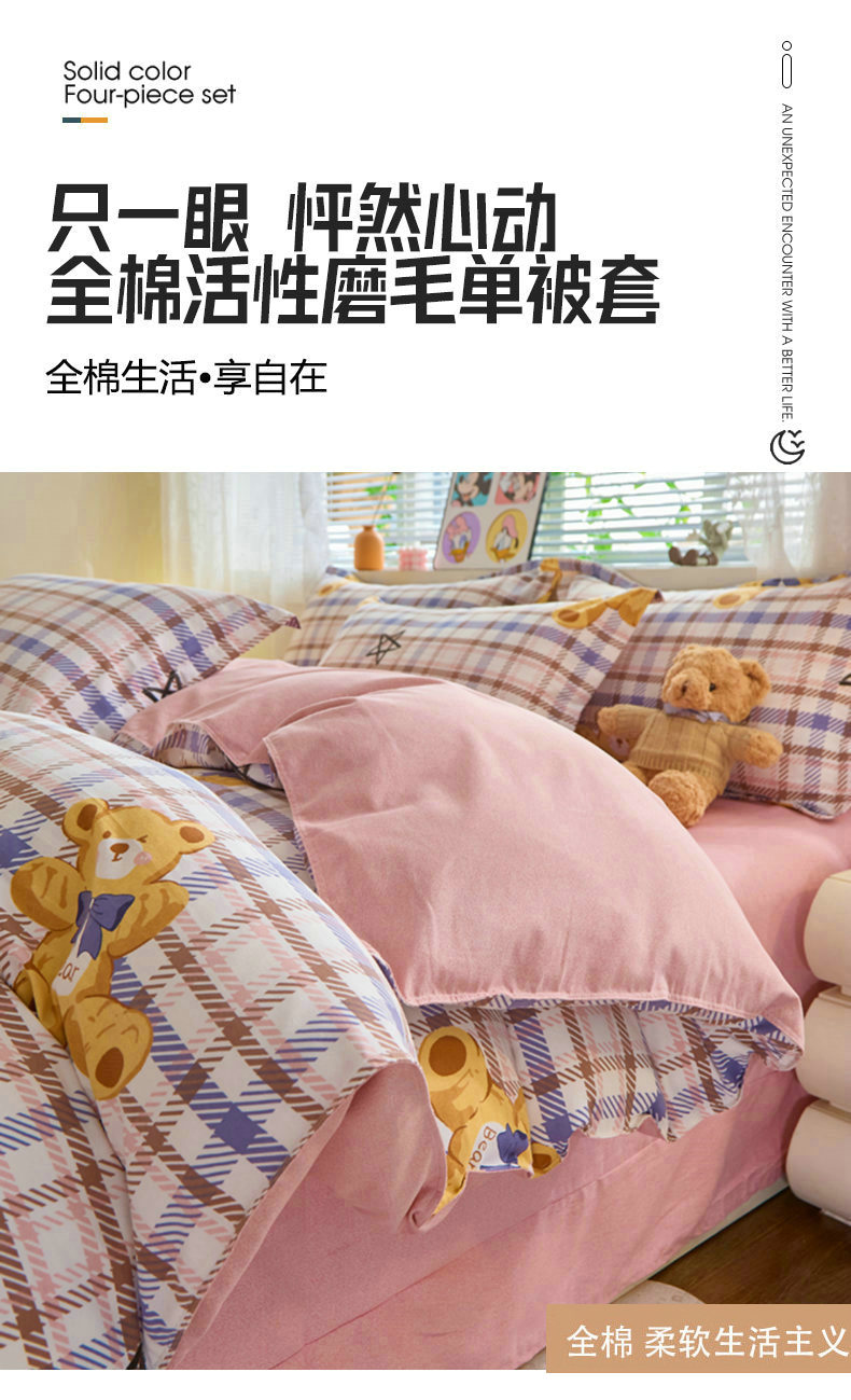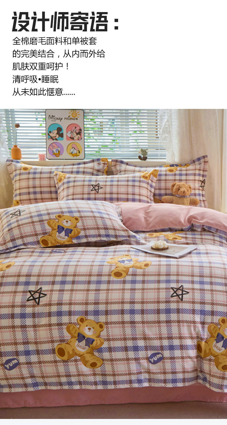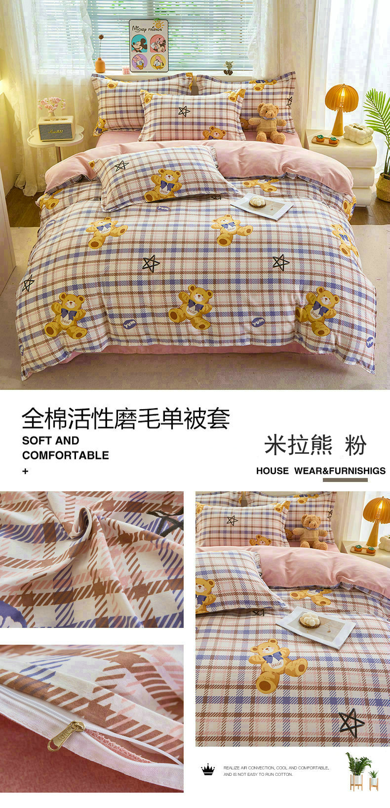 牧笛缘家纺 2024新款全棉磨毛单被套 米拉熊-粉