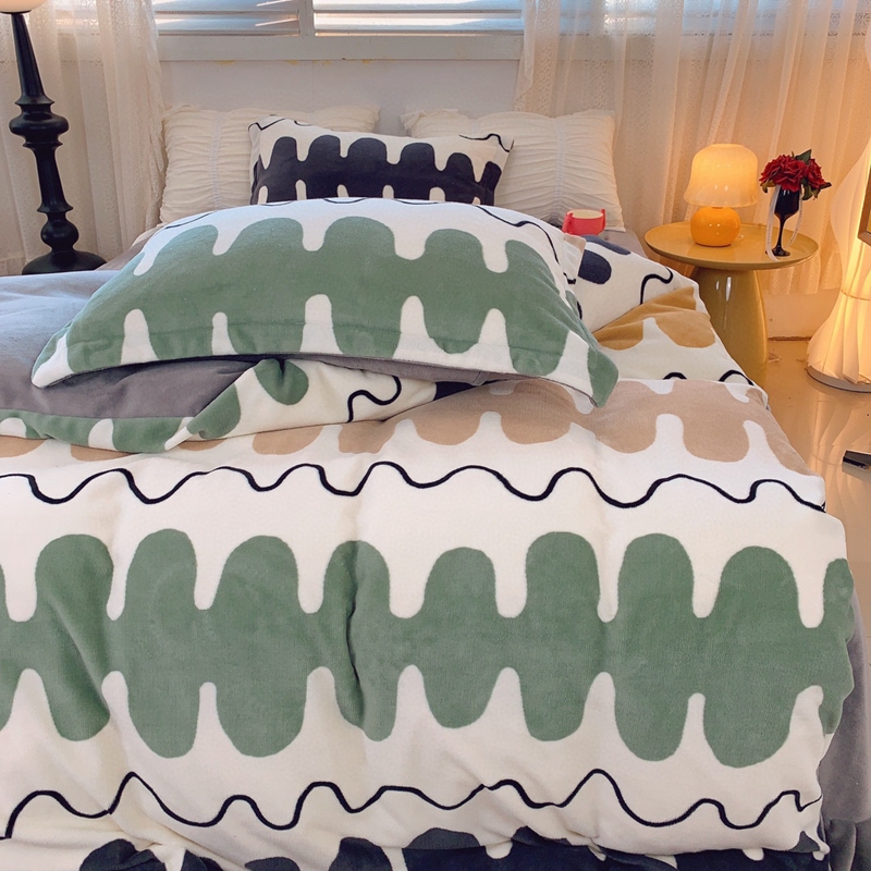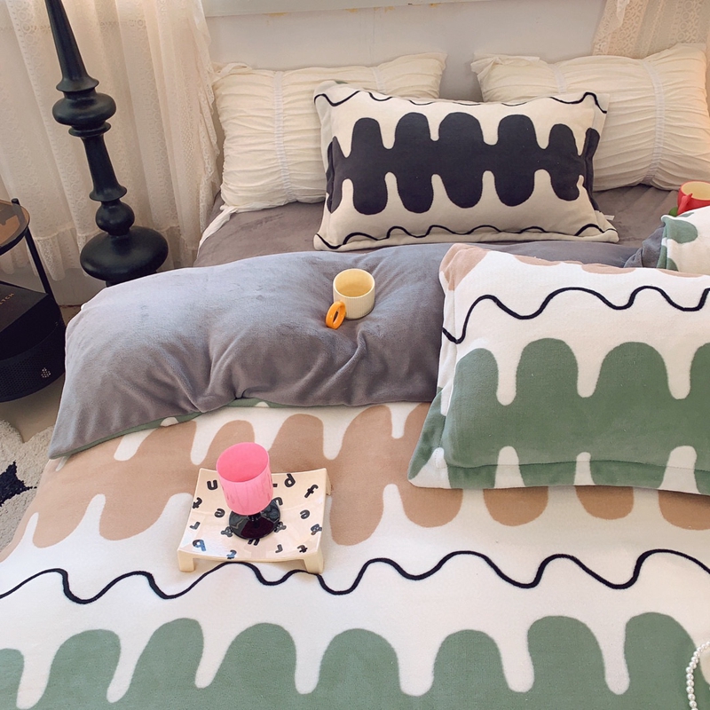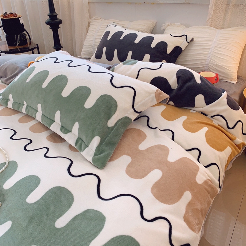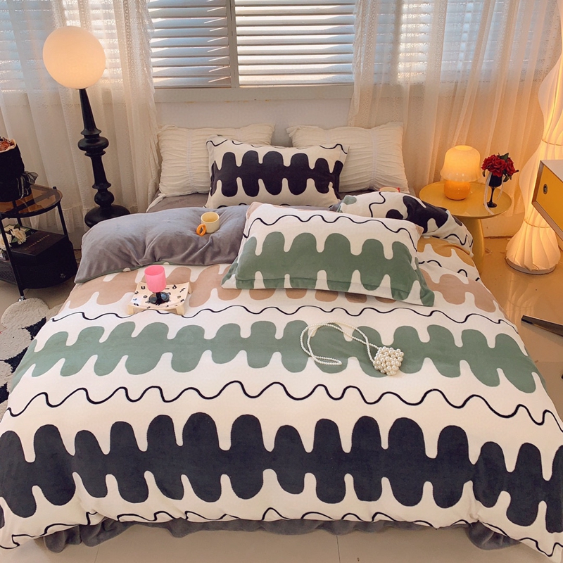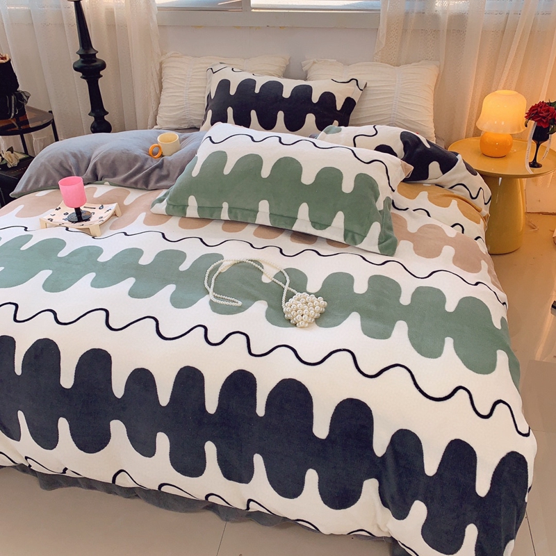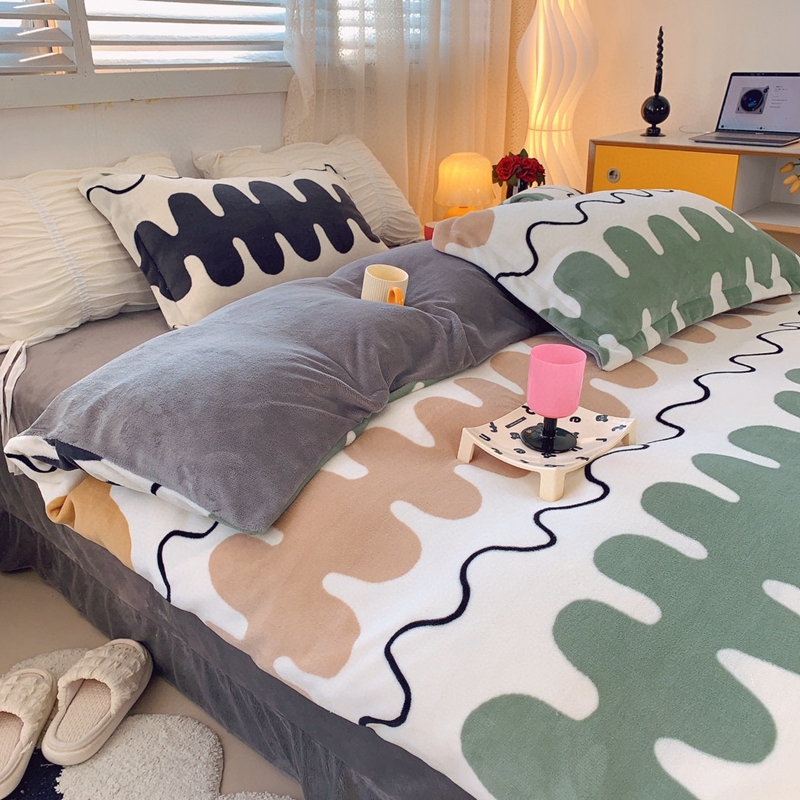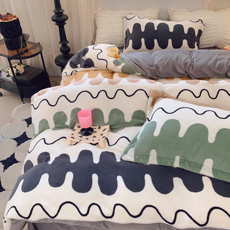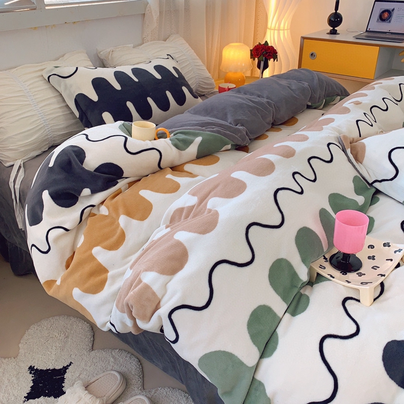 莱豫家纺 2024新款牛奶绒印花四件套 彩色鱼骨