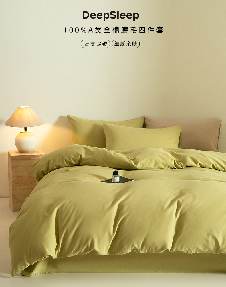 商品名称:Mr.pig猪先生水洗棉 2024新款A类50全棉磨毛单品-单被套 莫兰绿