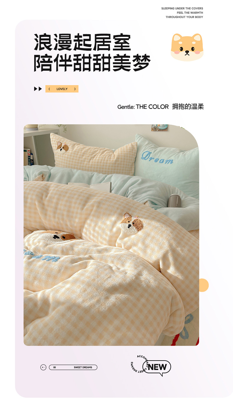 (总)顾里家纺 2025秋冬新款童趣毛巾绣印花牛奶绒四件套,爱心花猫,饼干熊,波点蛋糕猫,波点帽子狗,蛋糕花猫,粉格黑皮猫,粉苹果喵,快乐小狗,铃铛小熊,萌主小熊,摩卡小熊,奶泡狗狗,苹果狗,圣诞猫咪,圣诞麋鹿,圣诞沙发狗,圣诞树喵,台灯腊肠狗,贪吃熊,甜美花花,甜品狗狗,甜心猫猫,晚安小狗,线条西高地,星辰小熊,休闲猫咪,云朵喵酱,招财喵酱