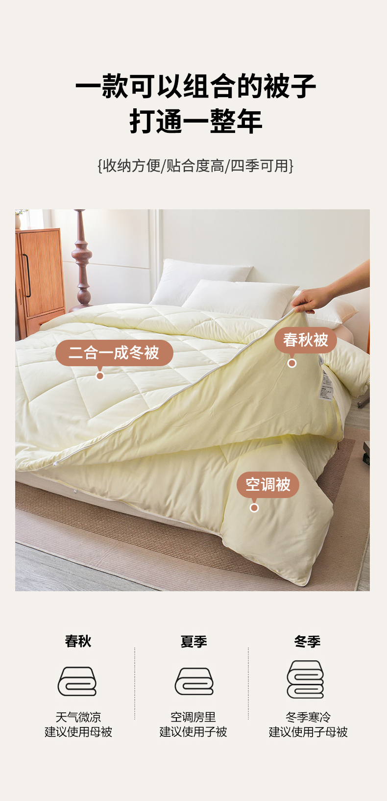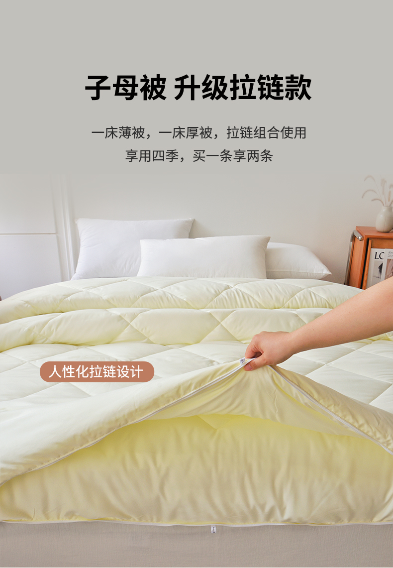 • 91家纺网 家纺一手货源 找家纺 德芙家纺 2024新款德芙双胎被被拉链款磨毛斜格二合一子母被被子被芯 斜格-米黄