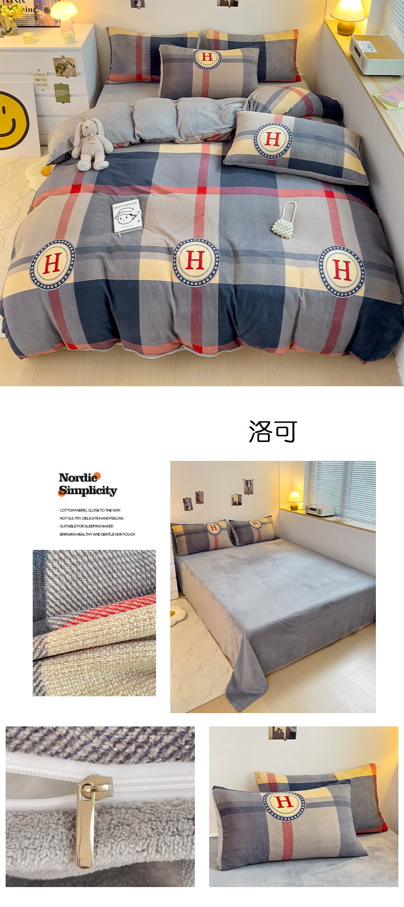 当前位置: 91家纺网 > 商品网购 > 床品套件 > 四件套 > 牛奶绒四件套 > 西引力 2024新款加厚小清新牛奶绒四件套床单款床笠款单被套爆款 洛可