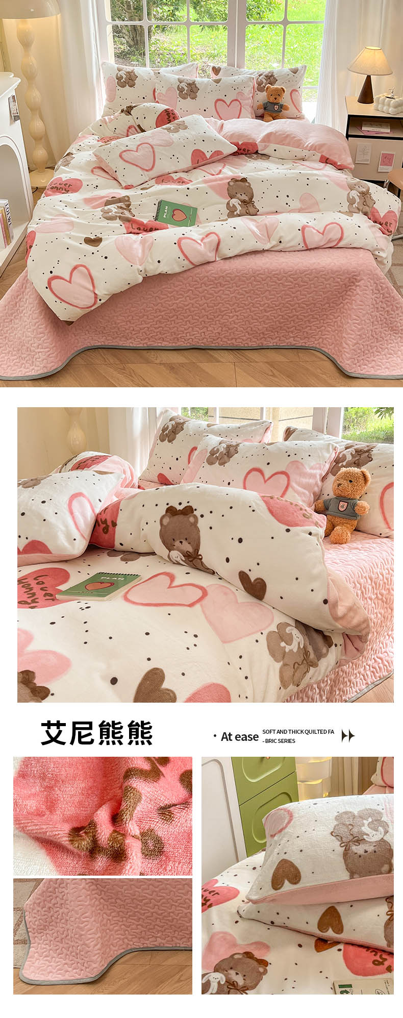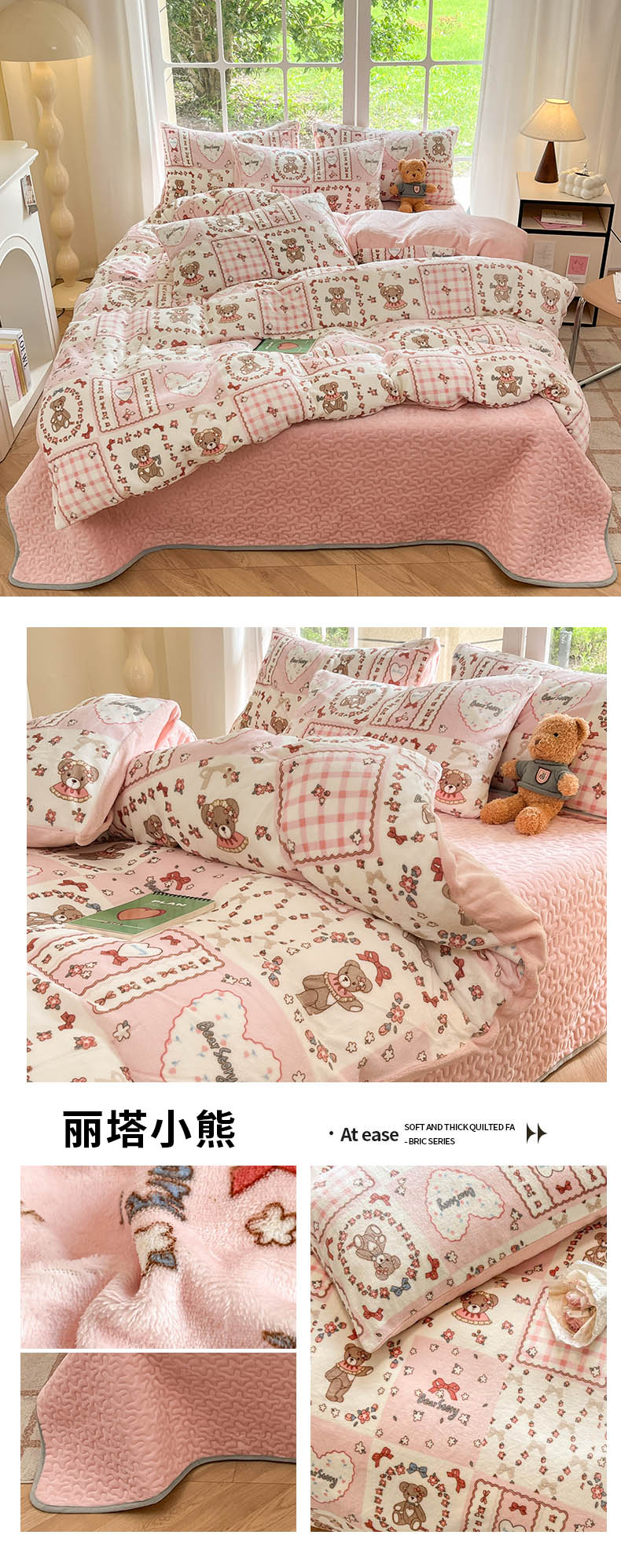 (总)新印象 2025新款全消光牛奶绒绣花活性印染四件套花梦小熊,花梦小熊-清新蓝,花梦小熊-少女粉,花梦小熊-香芋紫