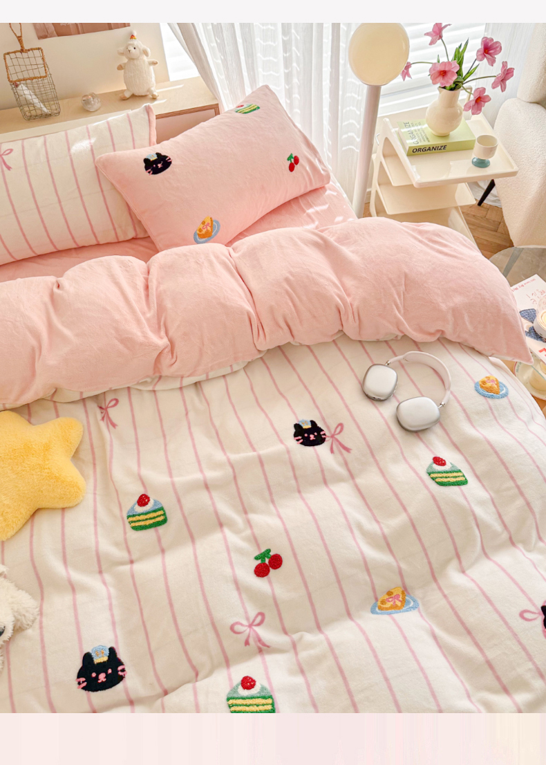 (总)呗旺鹿 2025新款亲肤舒适ins韩系撞色小清新牛奶绒四件套,海洋芝士-枕套粉色+格子,海洋芝士-枕套粉+粉,巧克力草莓酱-枕套蓝色+格子,巧克力草莓酱-枕套蓝色+蓝色,芝士草莓点点-枕套咖+粉格,芝士草莓点点-枕套咖+咖,芝士焦糖-枕套焦糖+格子,芝士焦糖-枕套焦糖+焦糖