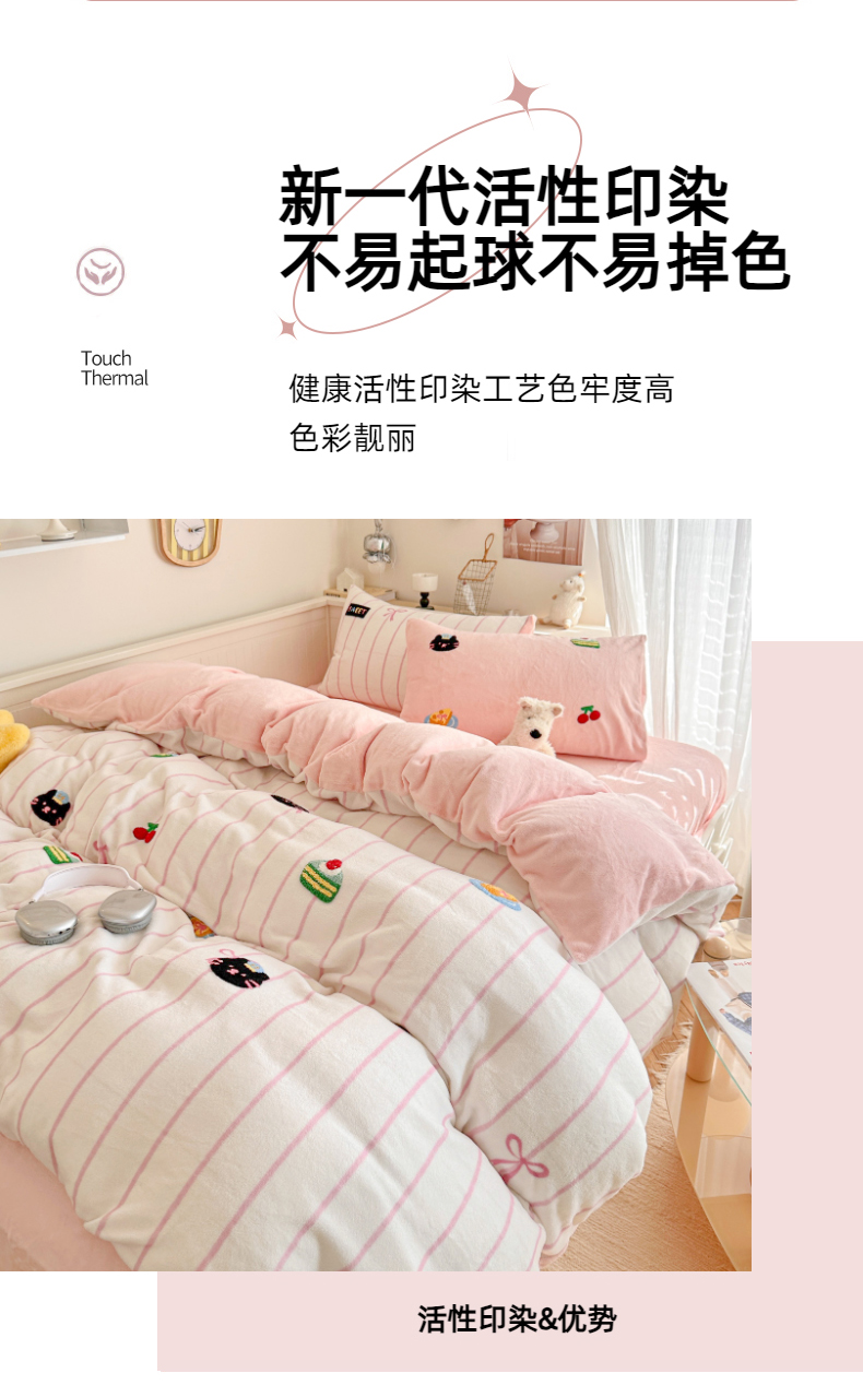 (总)呗旺鹿 2025新款卡通棉+绒牛奶绒棉绒四件套,心意满满,快乐魔法,闹钟麦田