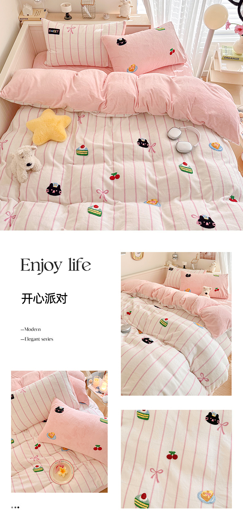 (总)呗旺鹿 2025新款A版全棉B版牛奶绒四件套,冰岛小马,萌星,糖果小马,小狗笔记,费尔岛小熊