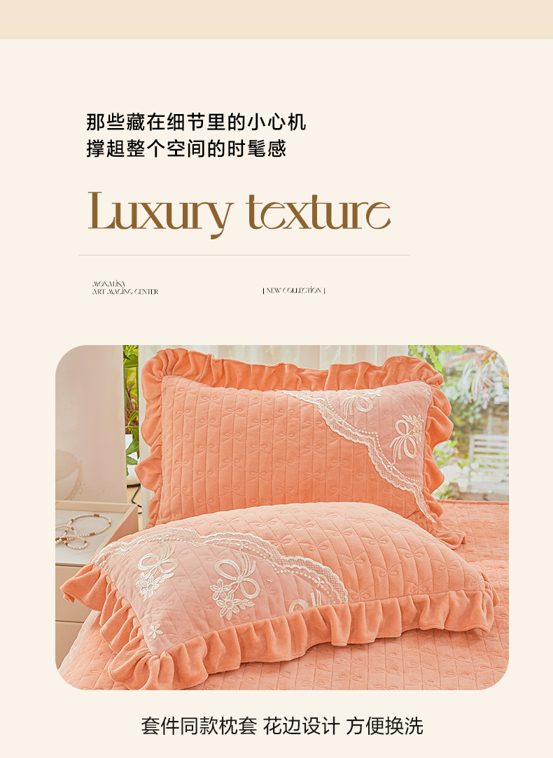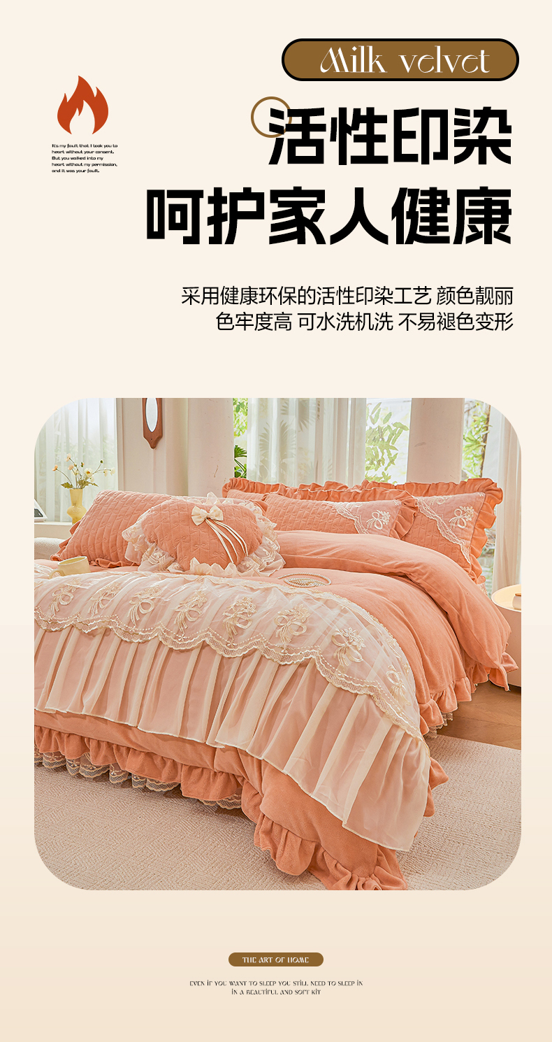 当前位置: 91家纺网 > 商品网购 > 床品套件 > 四件套 > 牛奶绒四件套 > 2024新款加厚牛奶绒蕾丝刺绣床裙四件套-莫奈花园系列 莫奈花园-梦幻玉