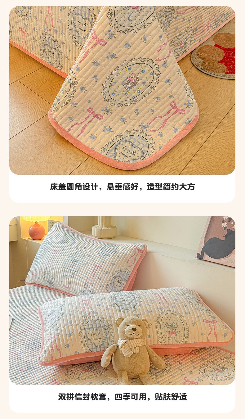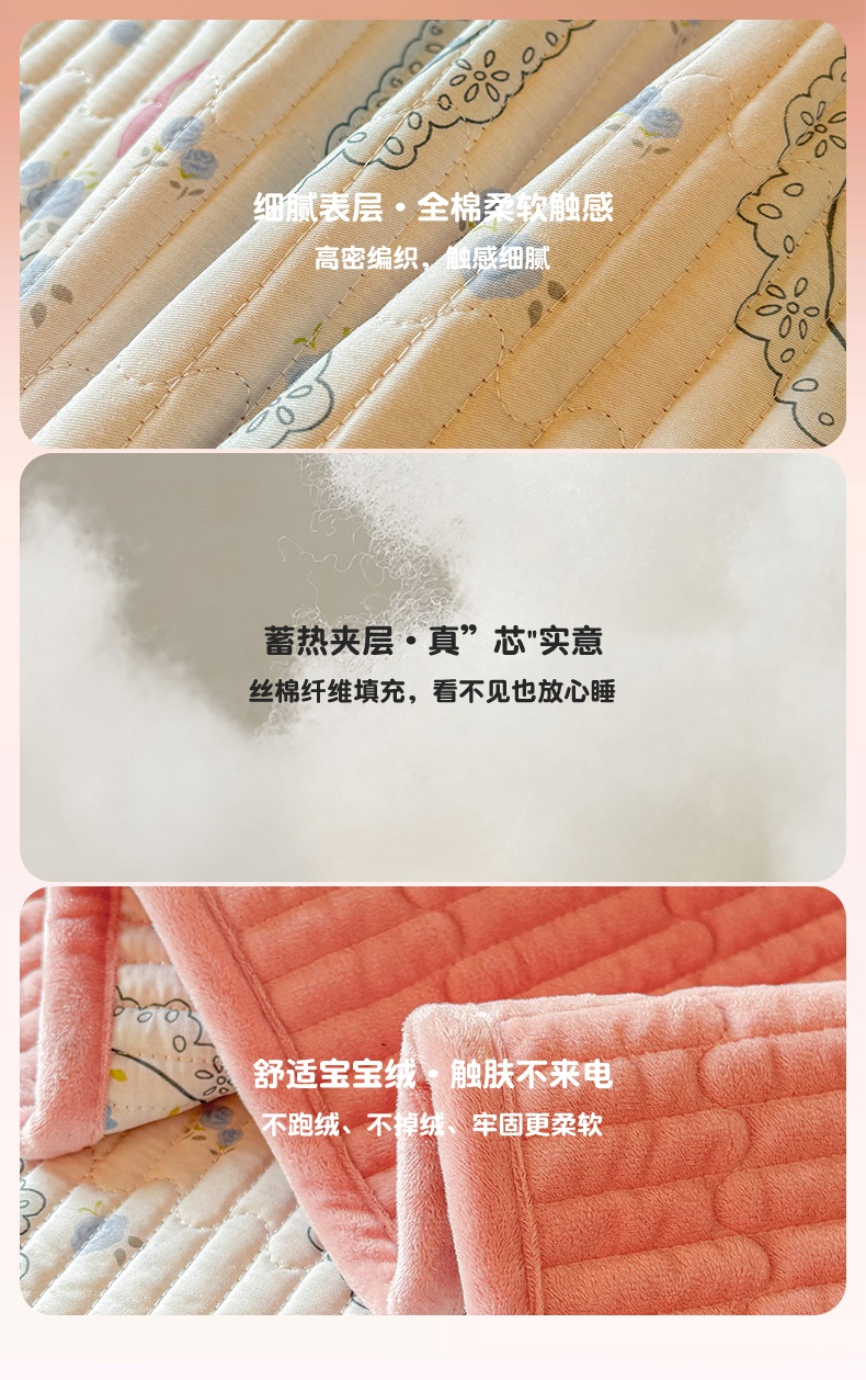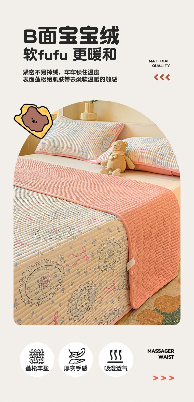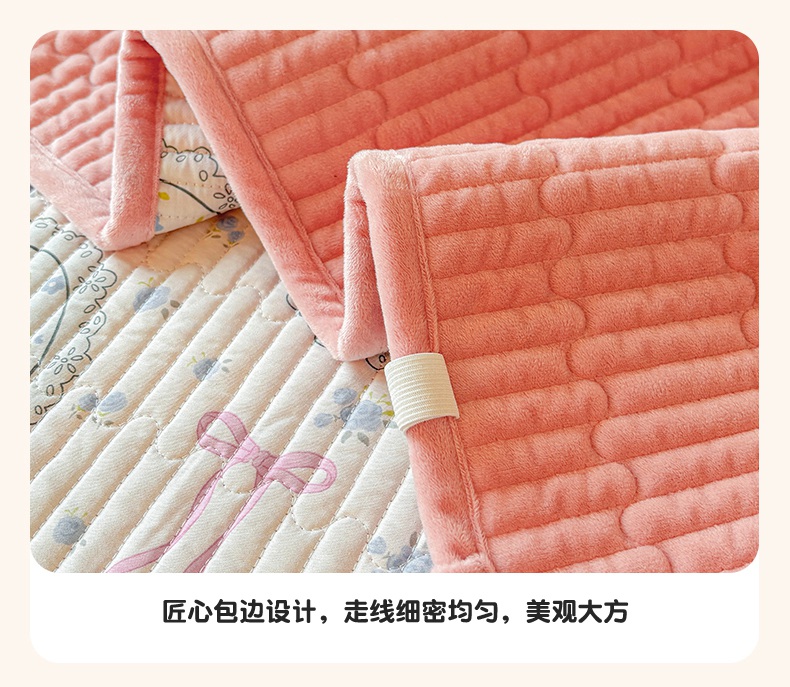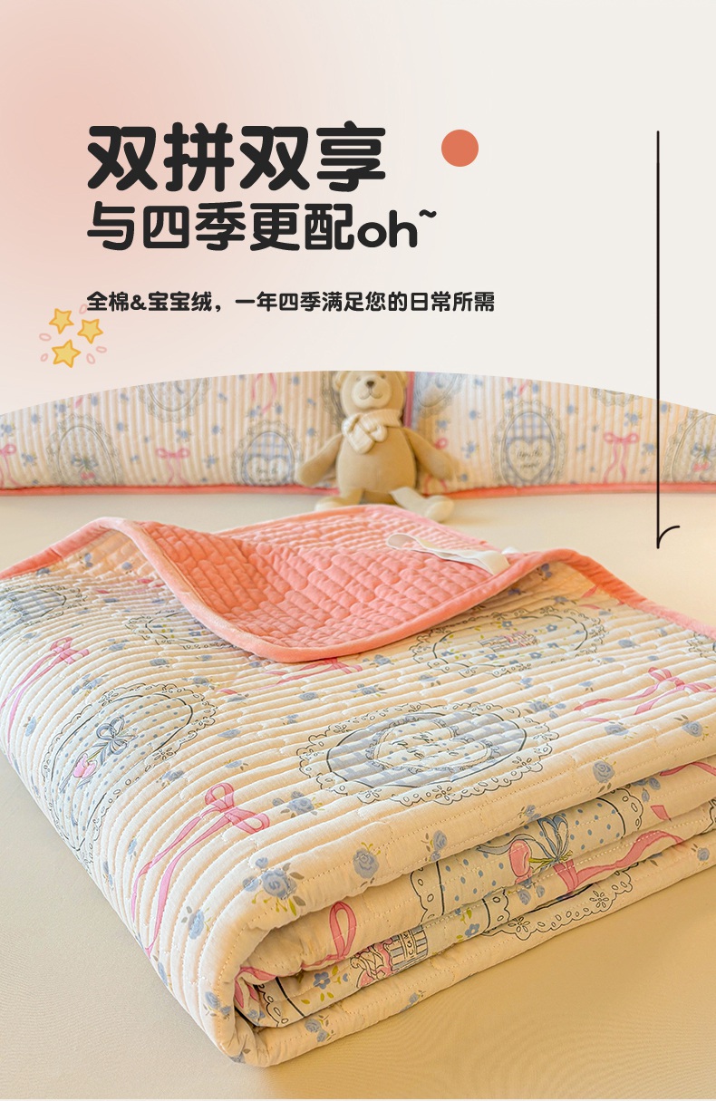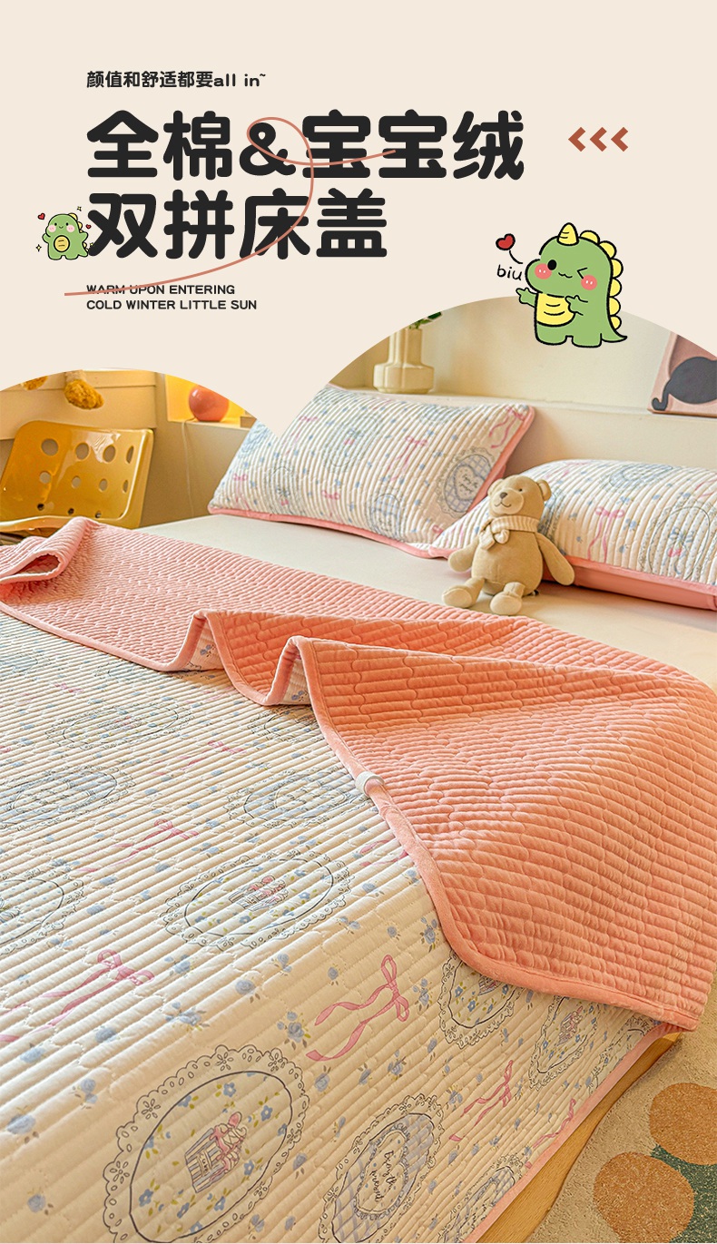 2024新款全棉卡通印花宝宝绒双拼床盖床垫情缘