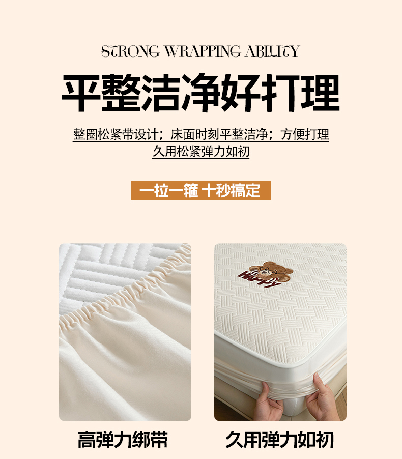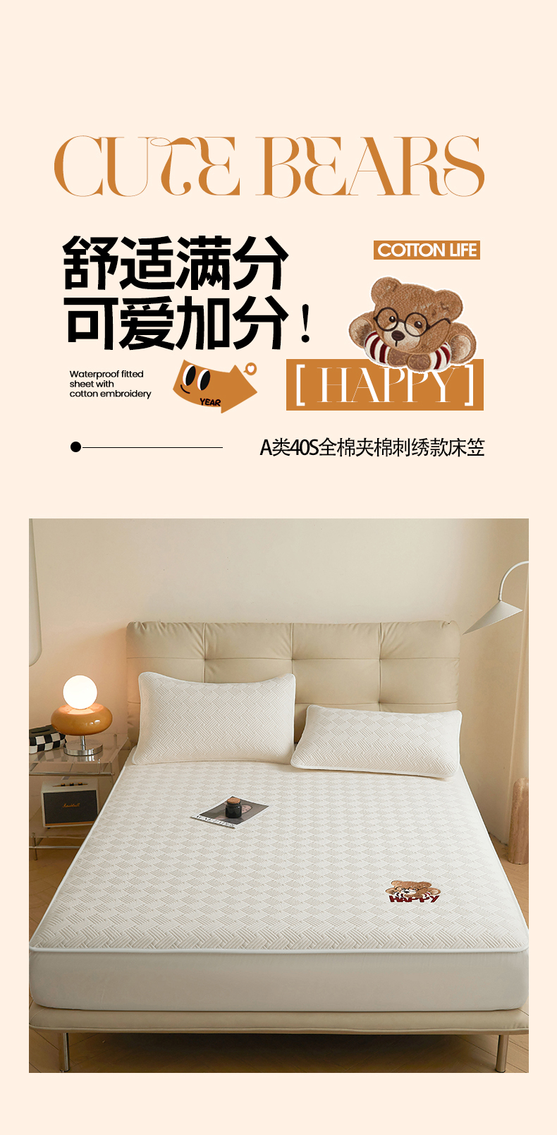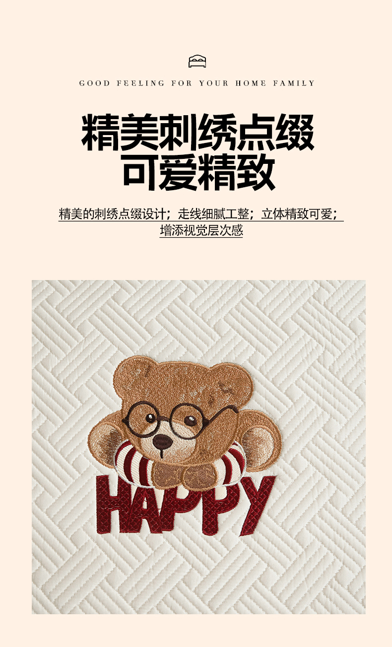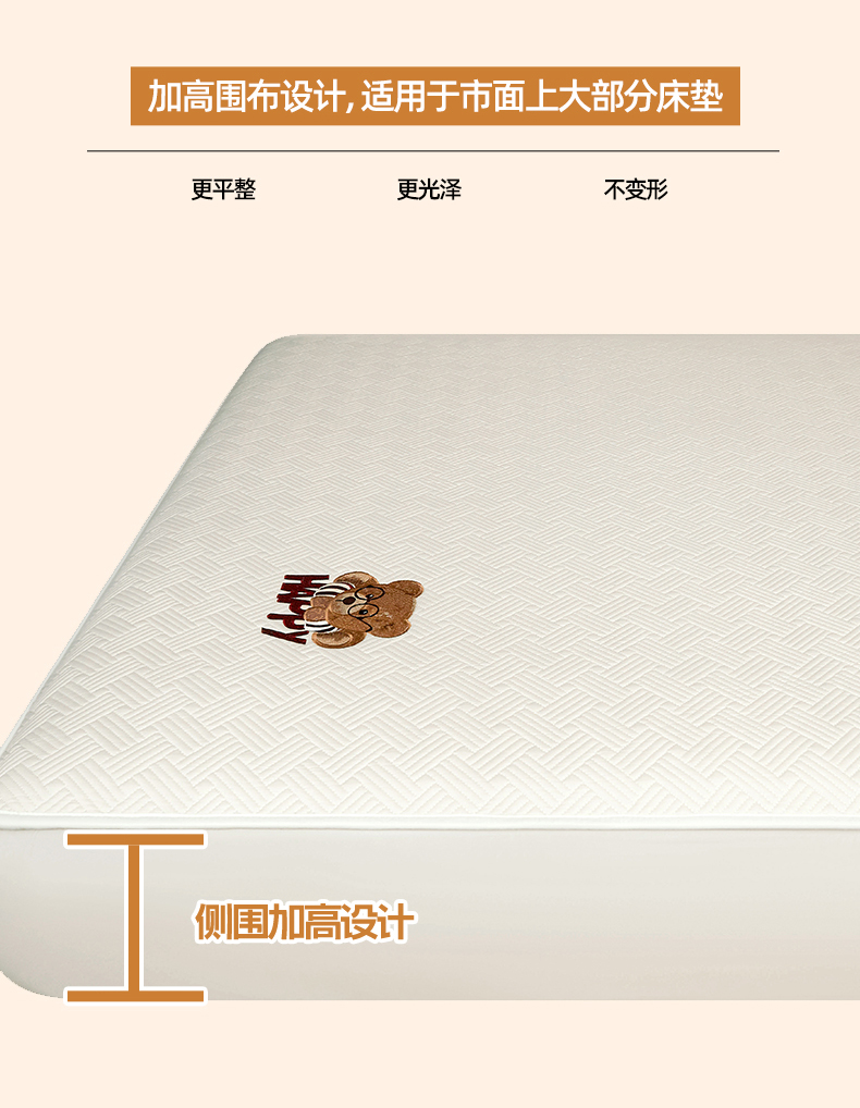 商品名称:暖季家纺 2025新款40支长绒棉刺绣款全棉夹棉床笠支持定制 博士小熊-奶昔白