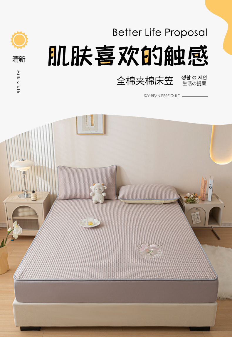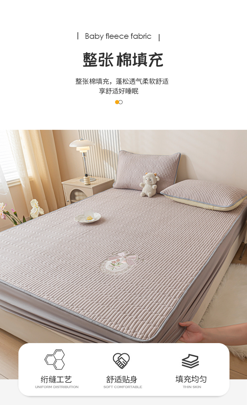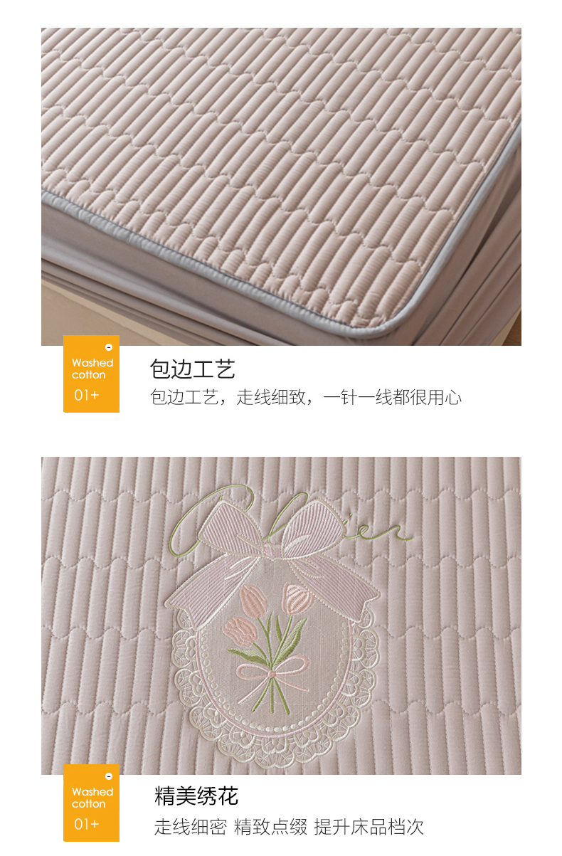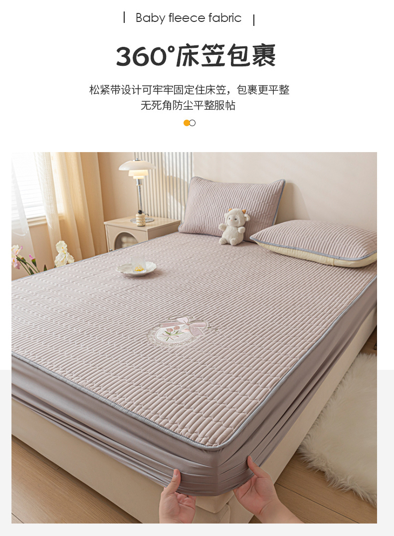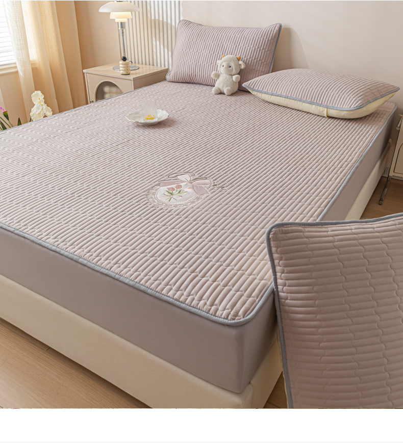 • 91家纺网 家纺一手货源 找家纺 暖季家纺 2025新款40支长绒棉刺绣款全棉夹棉床笠支持定制 全棉夹棉蝴蝶结-山灰
