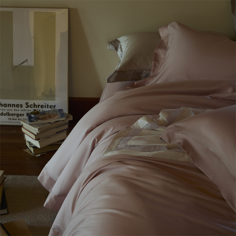 嘉恋 2023新款100支全棉提花镂空四件套送包装西柚粉,西柚粉