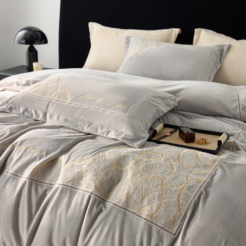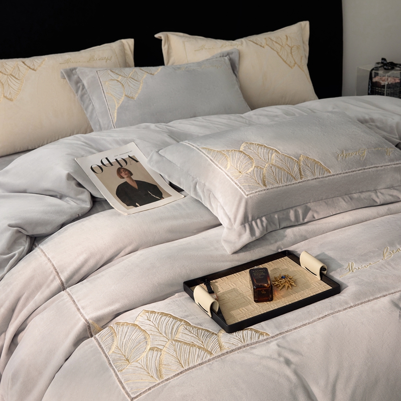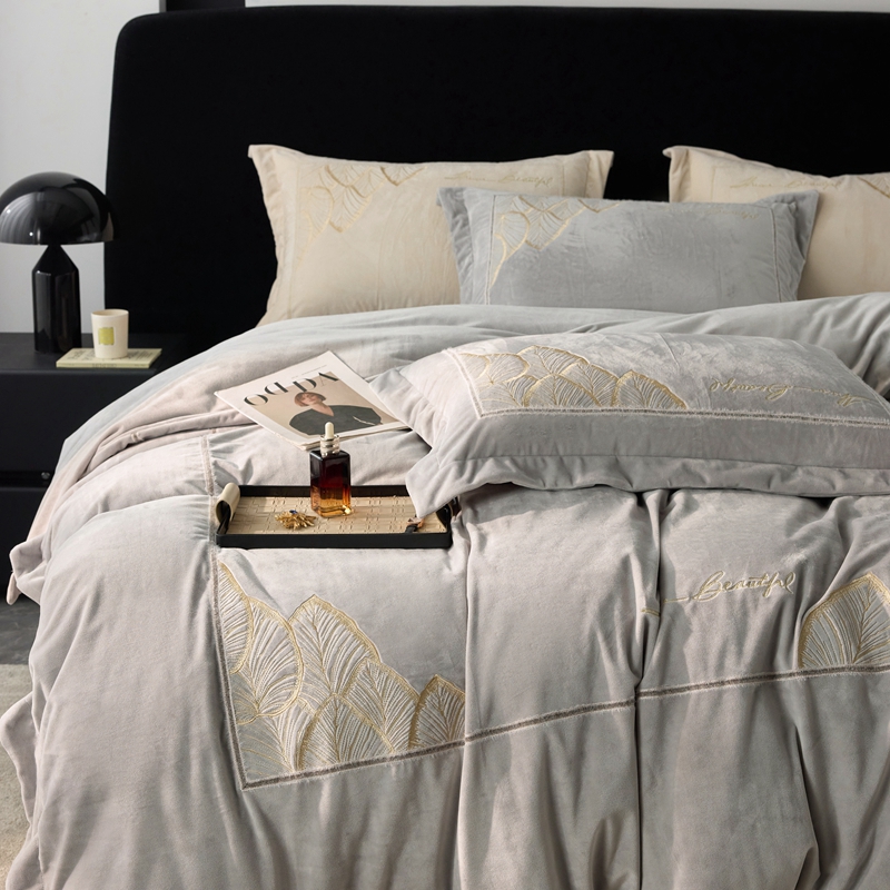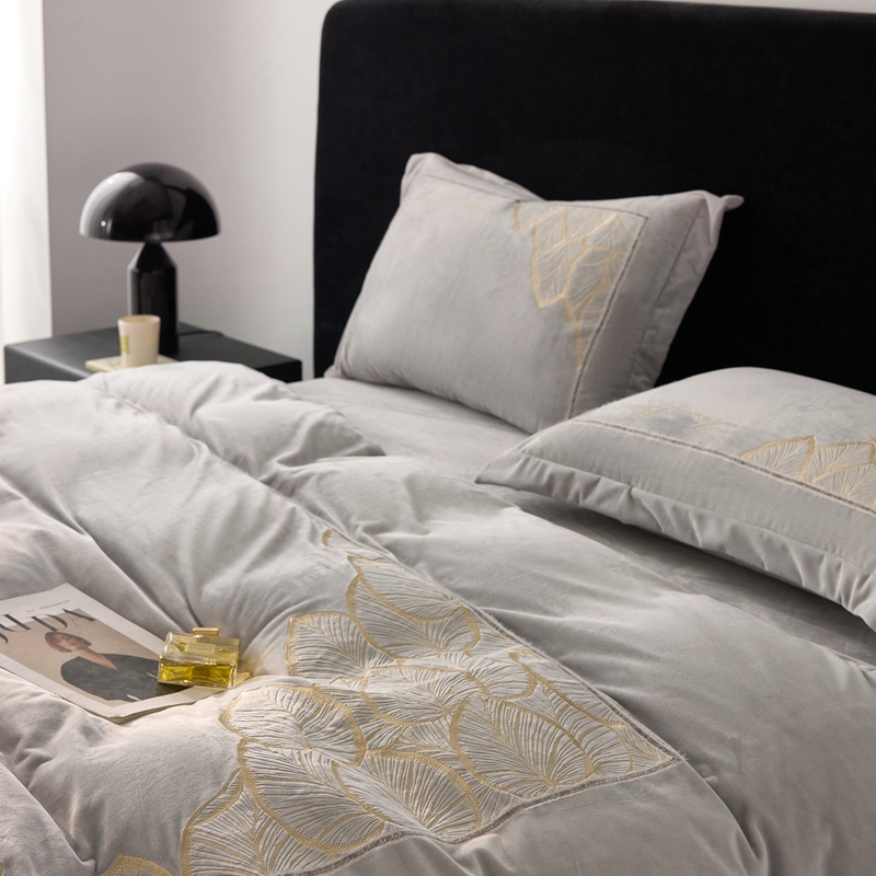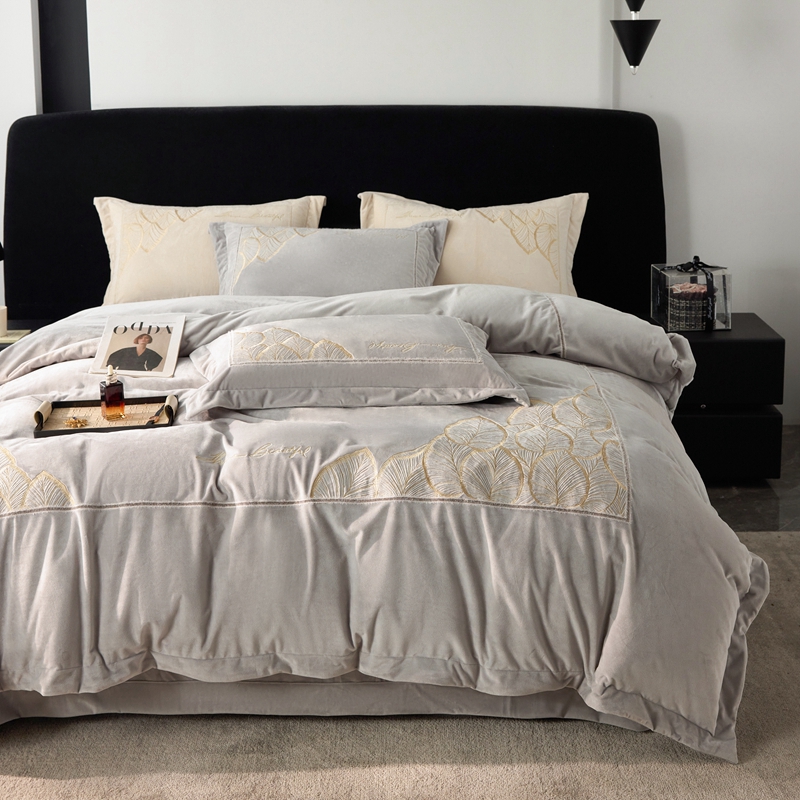 时亿家居 2024新款300g婴肤绒刺绣四件套-莫奈 莫奈-银灰