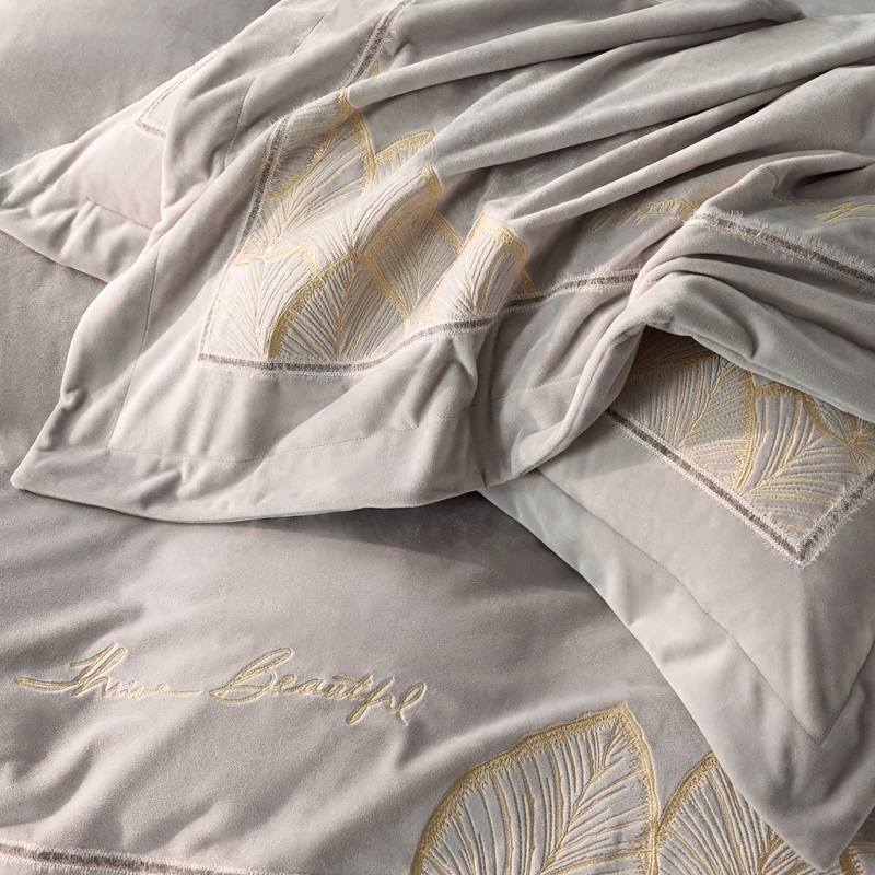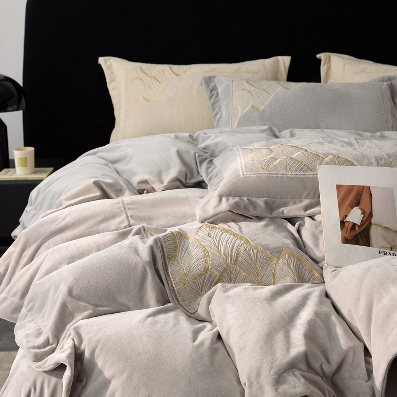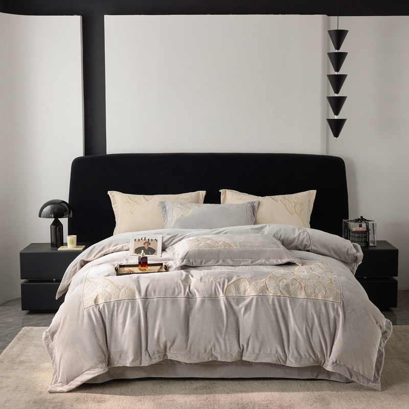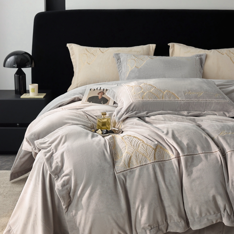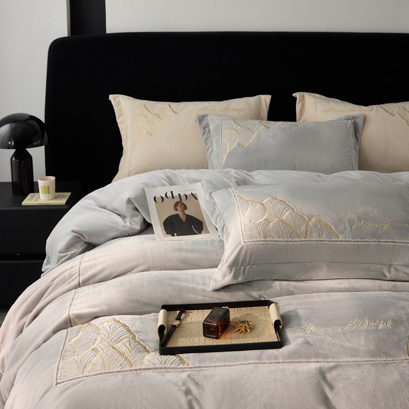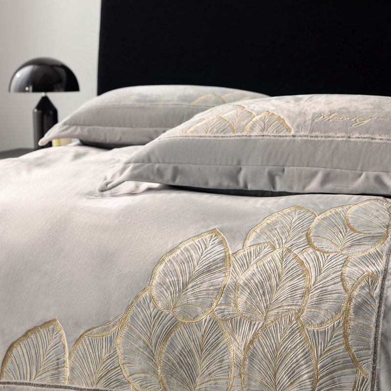 时亿家居 2024新款300g婴肤绒刺绣四件套-莫奈 莫奈-银灰