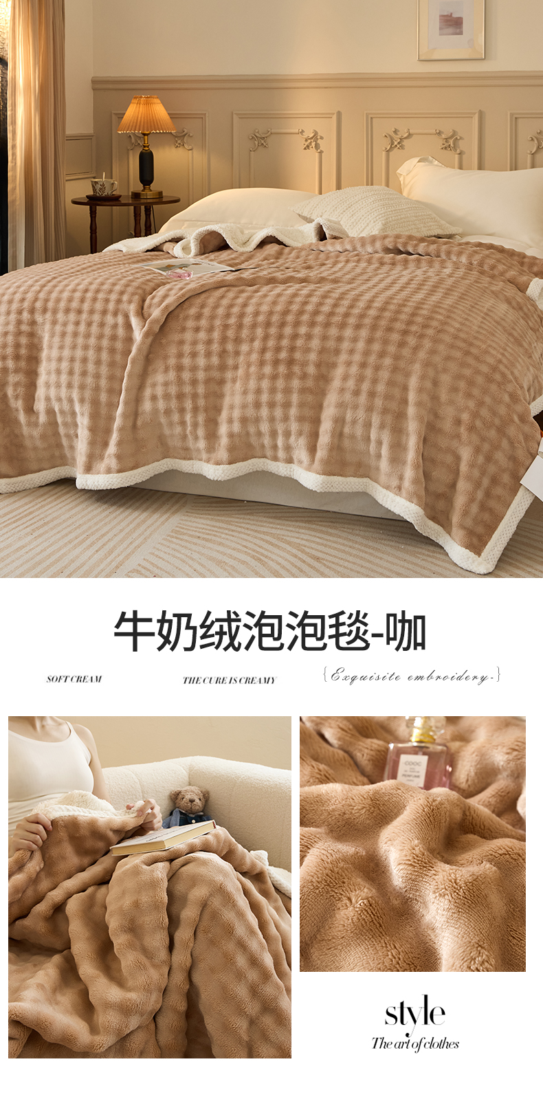 (总)金喜 2025新款双面仿羊绒多功能毯毛毯盖毯,美拉德,摩卡,气质灰,浅粉,香芋紫,蓝宝石