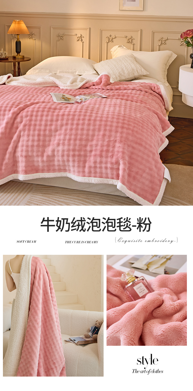 (总)金喜 2024新款高克重全消光牛奶绒雕花绒床盖四件套加厚牛奶绒床盖套件--极简主义床盖套件系列,皮粉,石灰,蔚蓝,杏仁