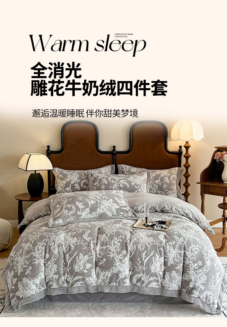 (总)慕晨 2025新款立体提花绒工艺款美拉德风格高克重雕花加厚牛奶绒四件套,戈薇,蝶舞,莎莉,米妮,古琦,安娜