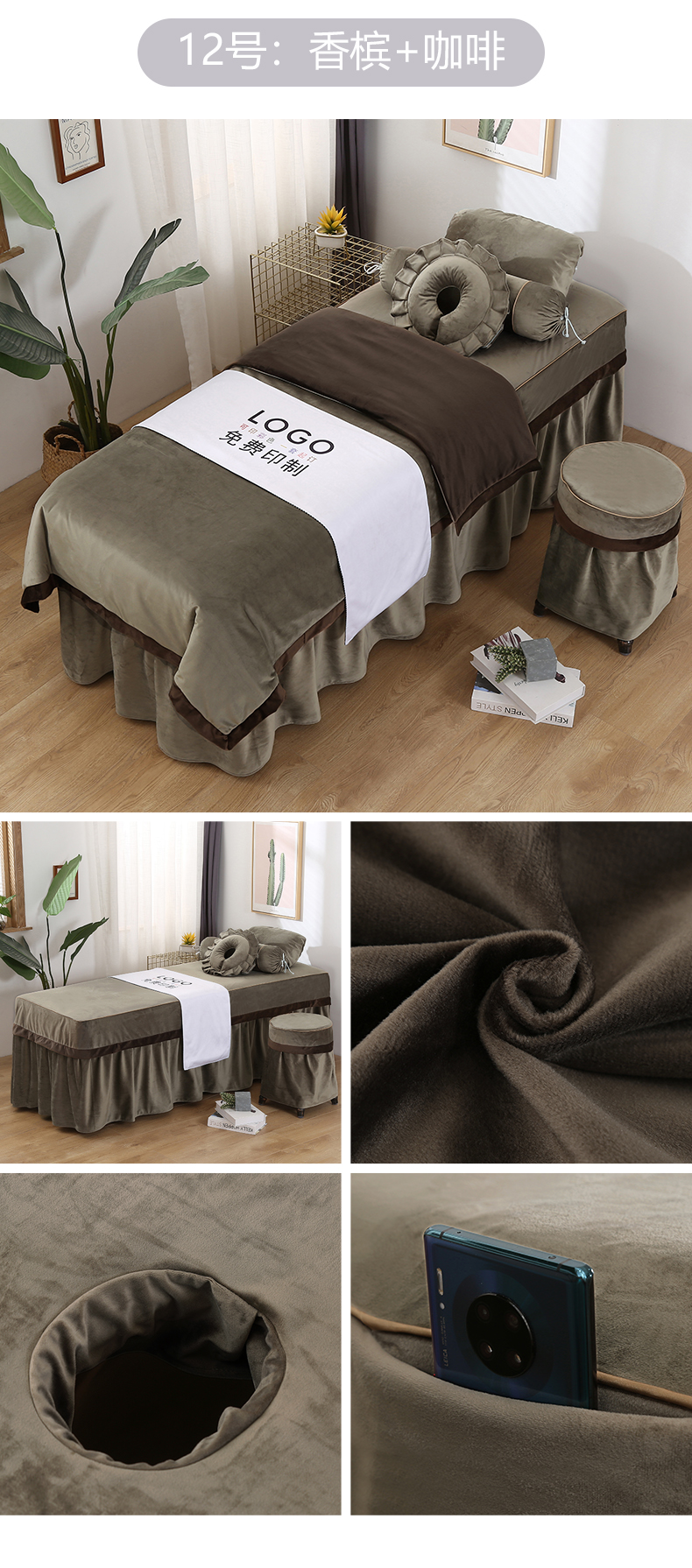 琪宝阁 2024新款立体绒小时代美 容床罩套件 12号:香槟+咖啡
