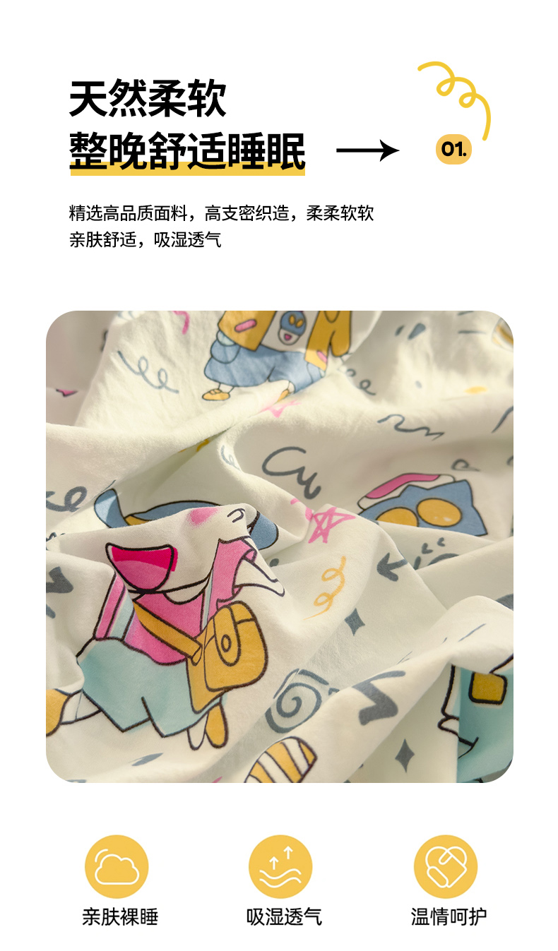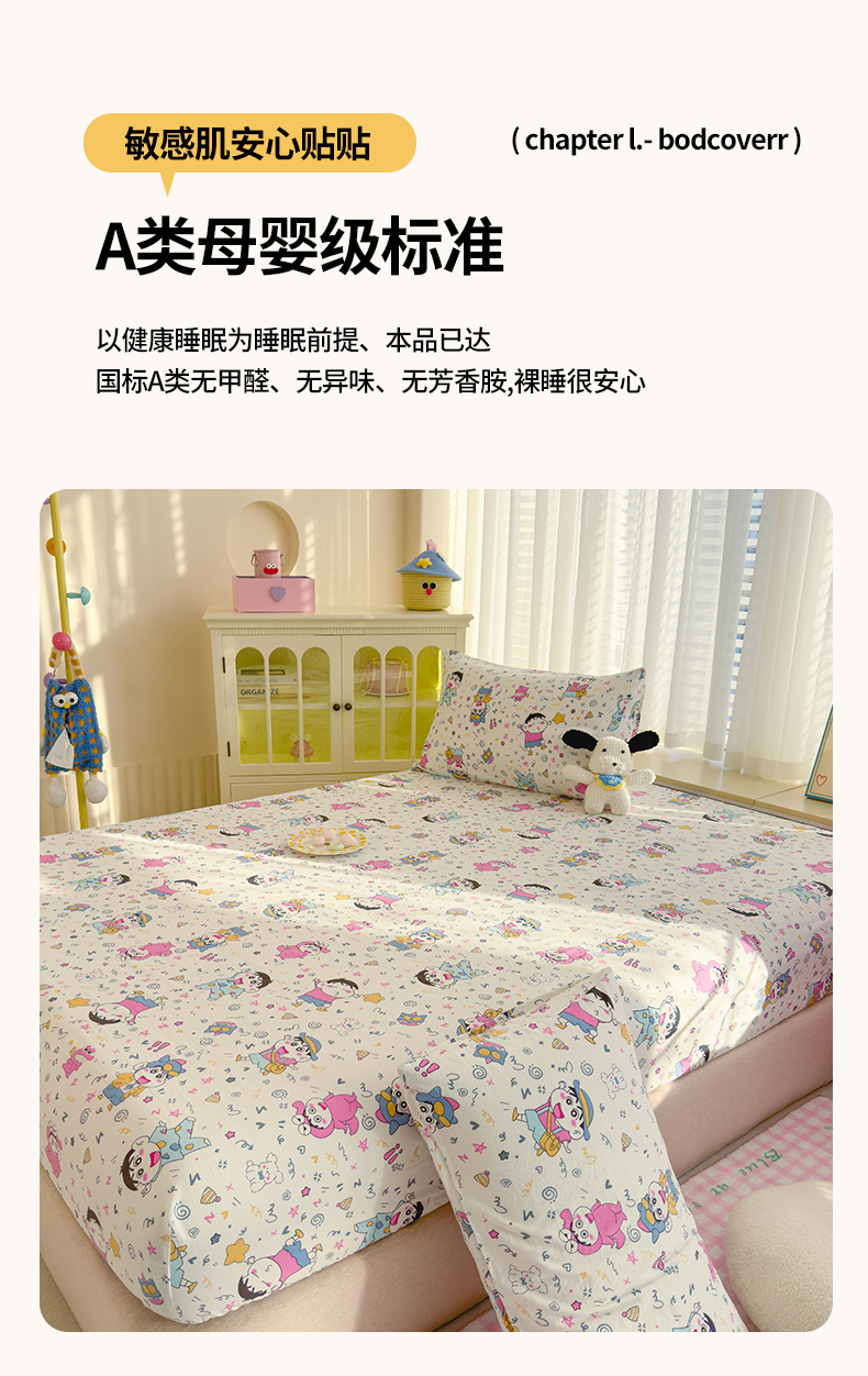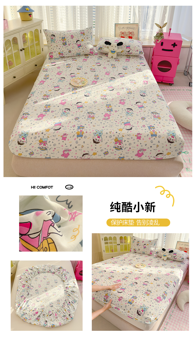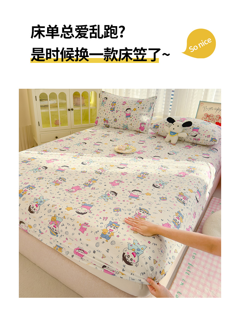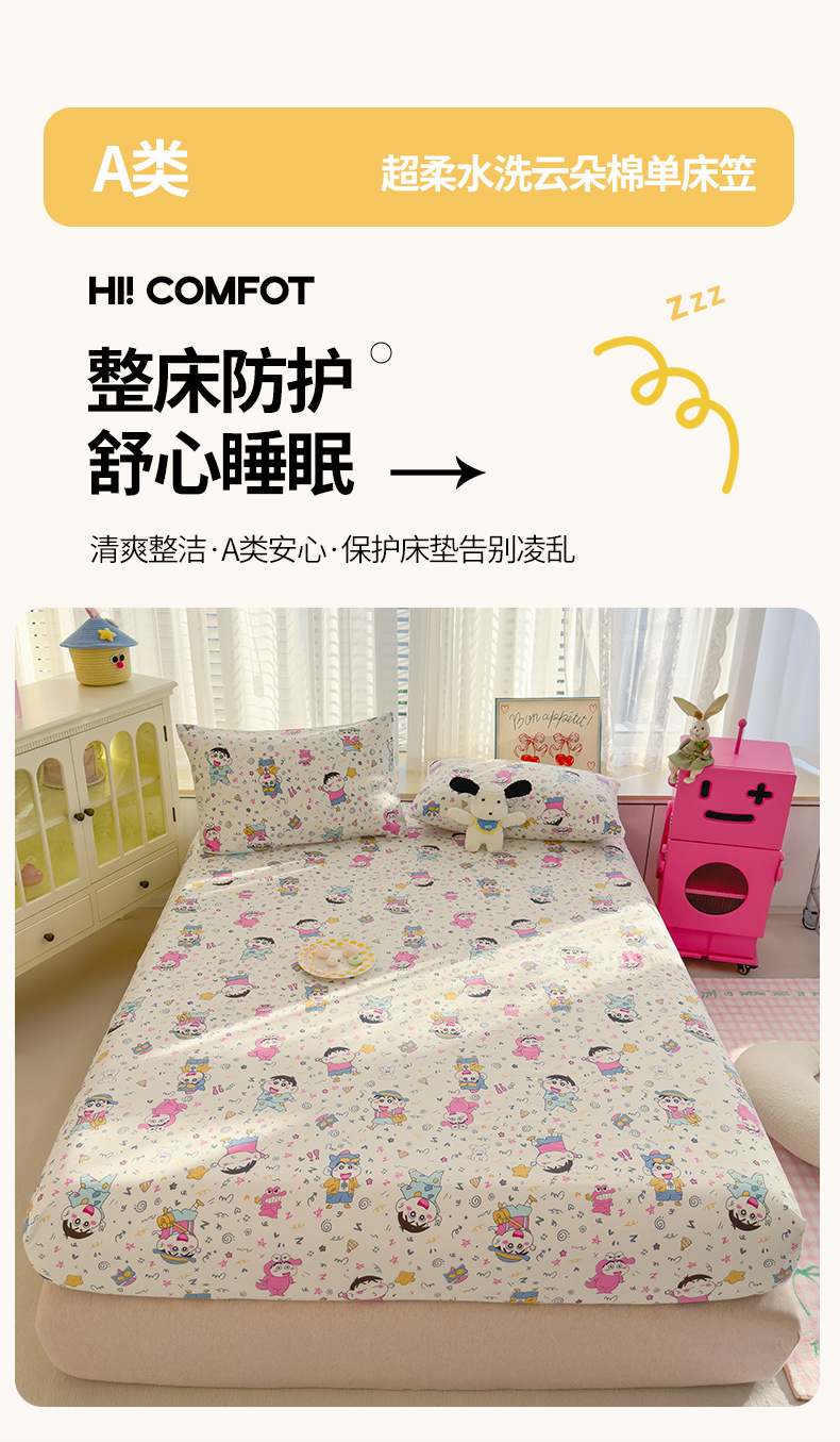 宏源家纺2024新款A类高克重超柔水洗云朵棉单床笠 纯酷小新