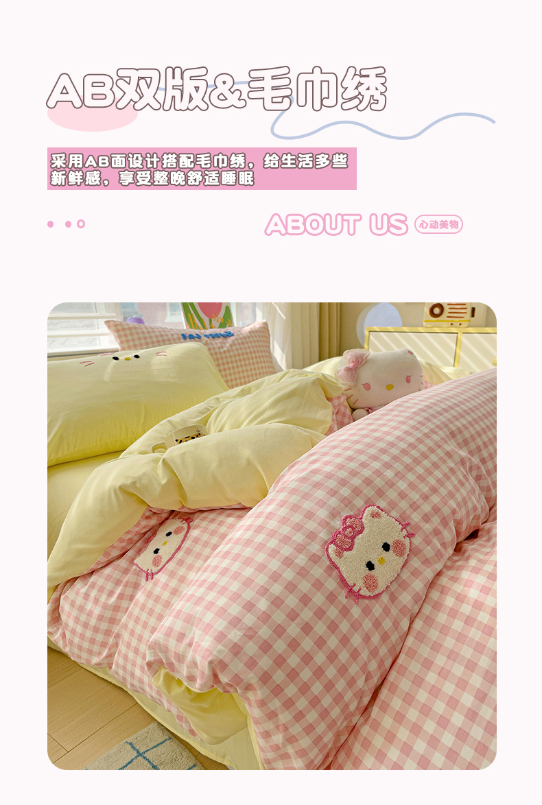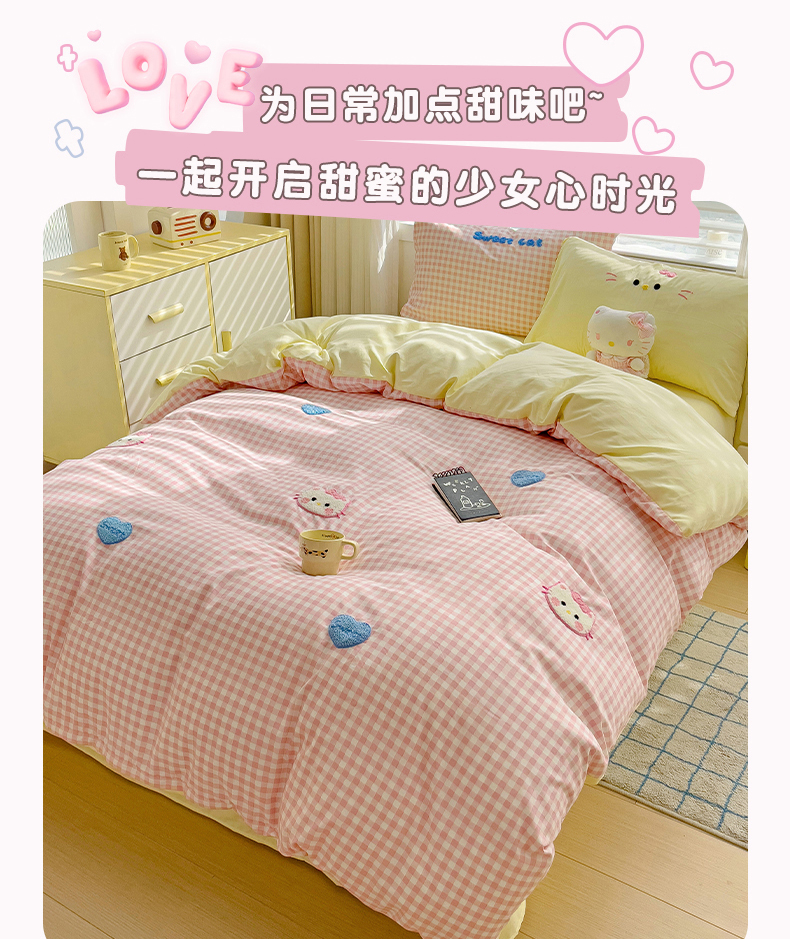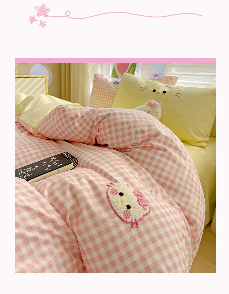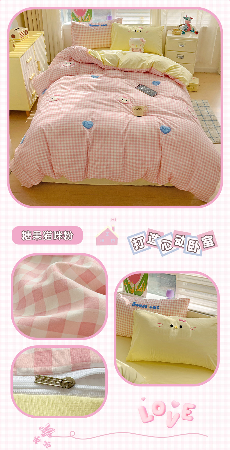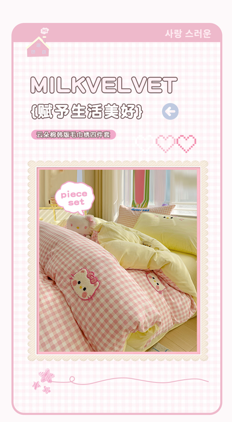 当前位置: 91家纺网 > 商品网购 > 床品套件 > 四件套 > 毛巾绣四件套 > 罗亿家纺 2025新款格子卡通云朵棉毛巾绣四件套场景二(提供买家秀) 糖果猫咪粉