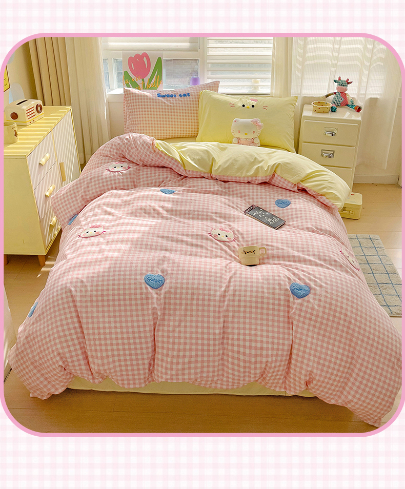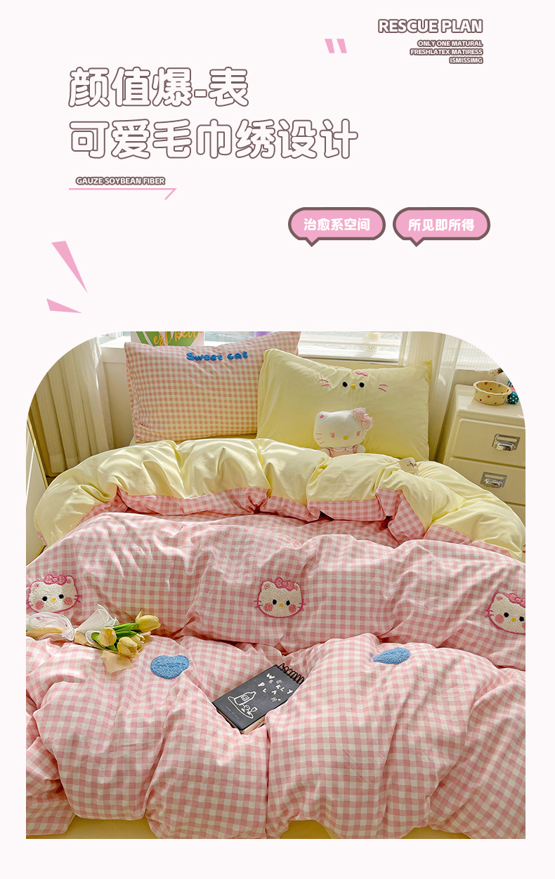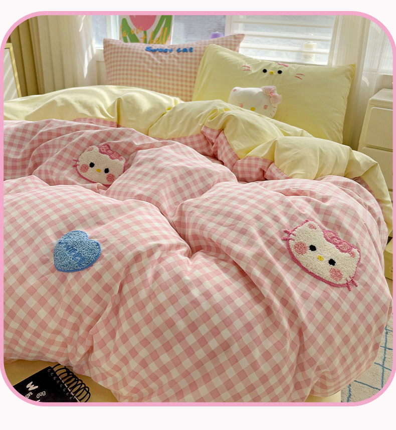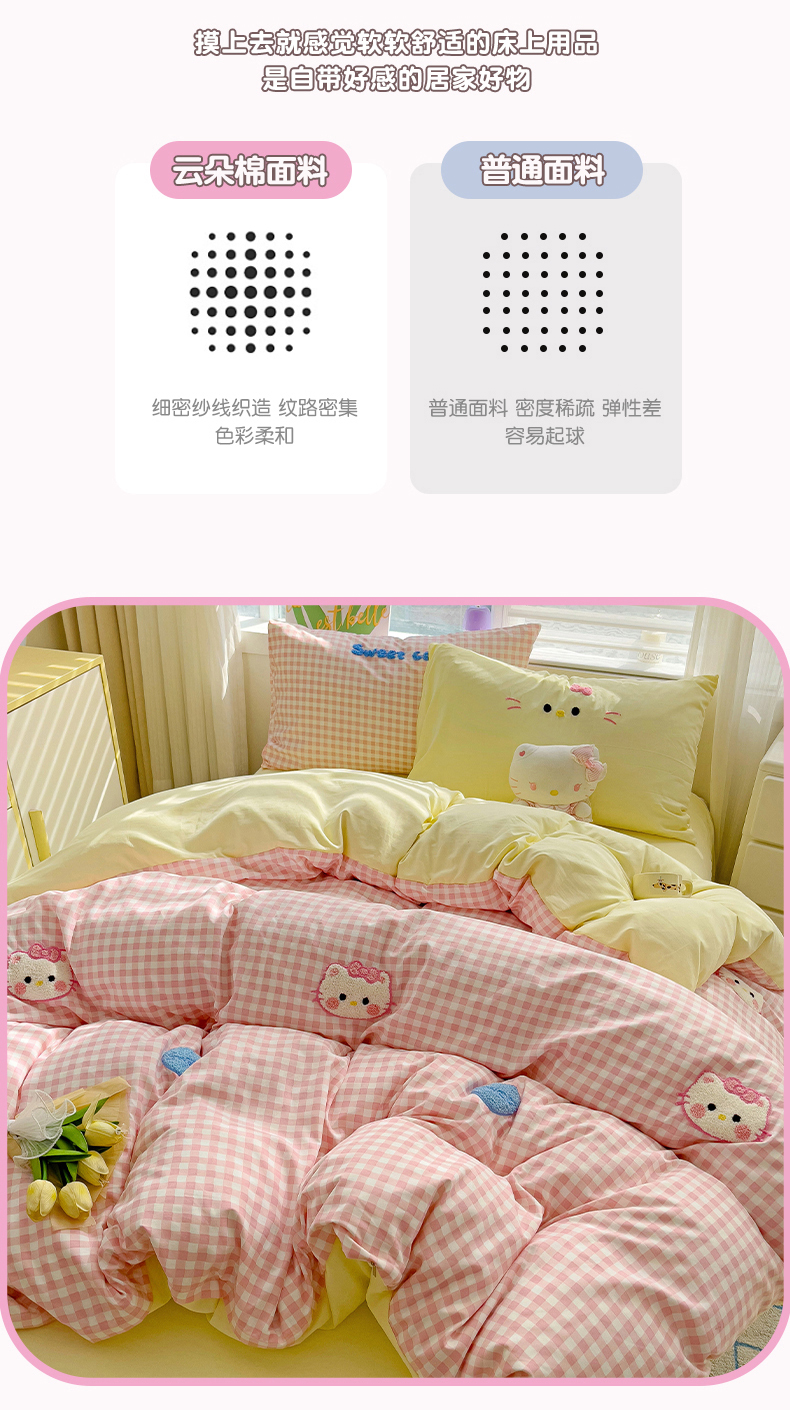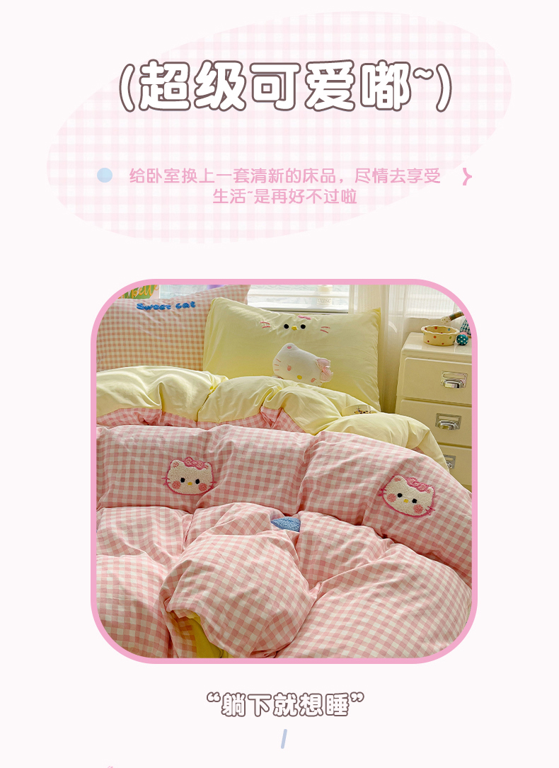 当前位置: 91家纺网 > 商品网购 > 床品套件 > 四件套 > 毛巾绣四件套 > 罗亿家纺 2025新款格子卡通云朵棉毛巾绣四件套场景二(提供买家秀) 糖果猫咪粉