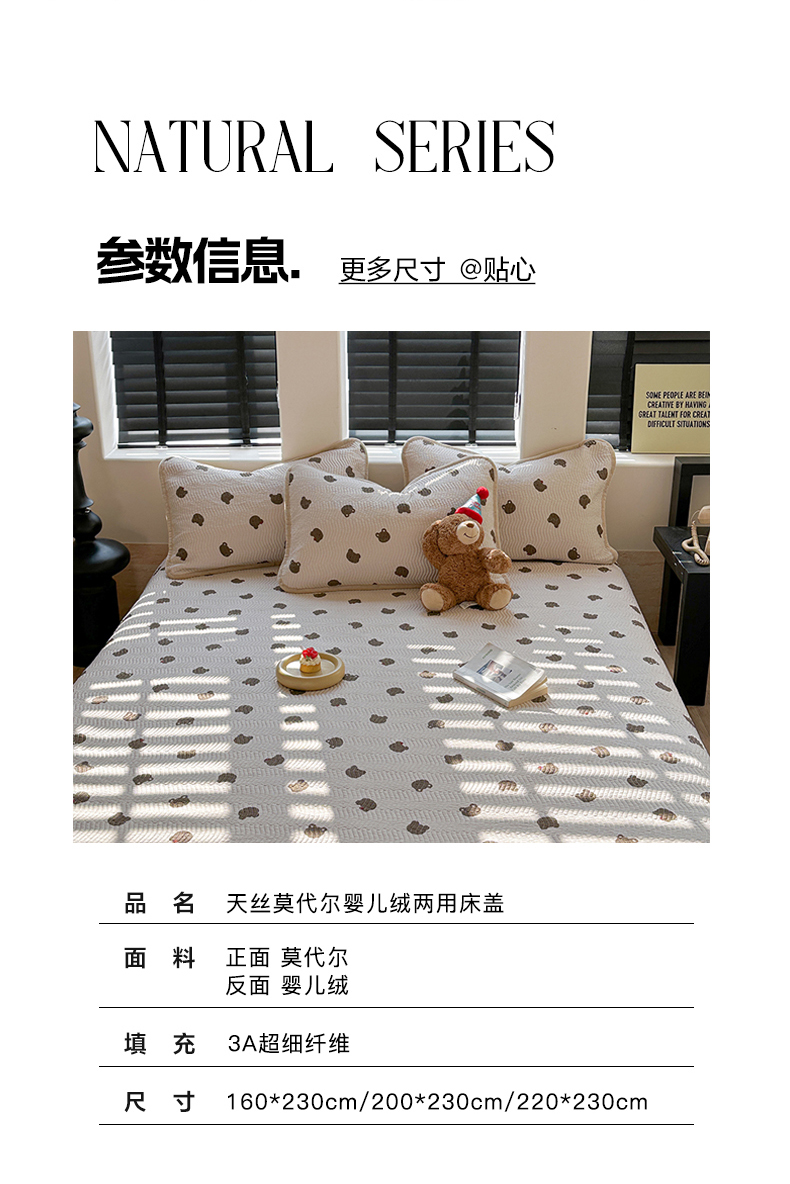 商品名称:麦伦家居 2024新款天丝莫代尔婴儿绒两用床盖 苹果小熊
