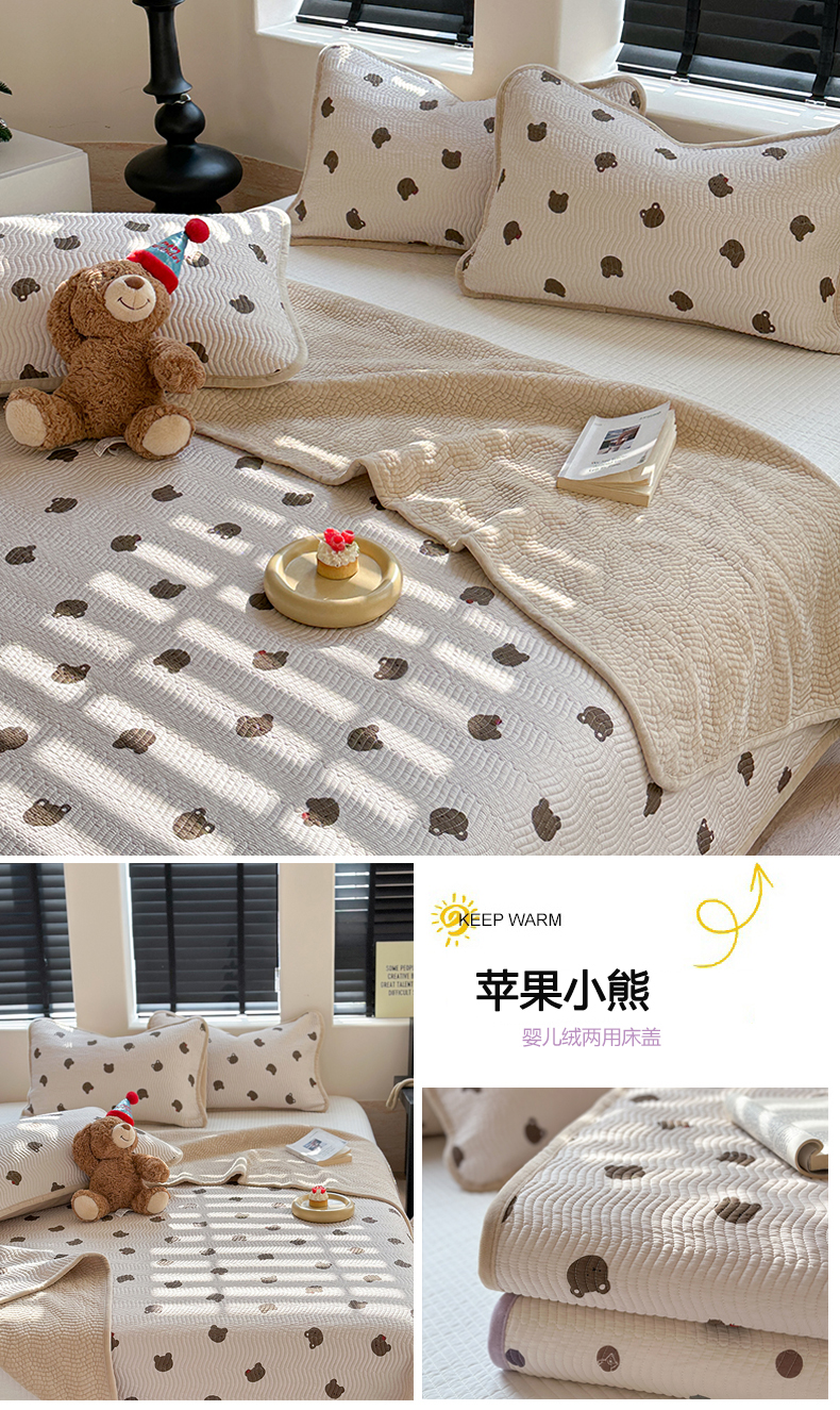 麦伦家居 2024新款天丝莫代尔婴儿绒两用床盖 苹果小熊