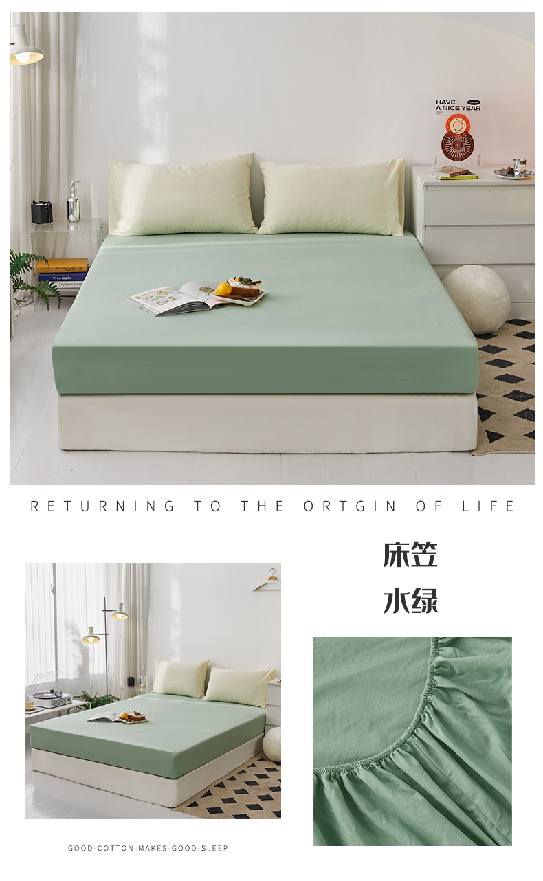 商品名称:雅居纺家纺 2025新款全棉素色水洗棉单床笠 水绿