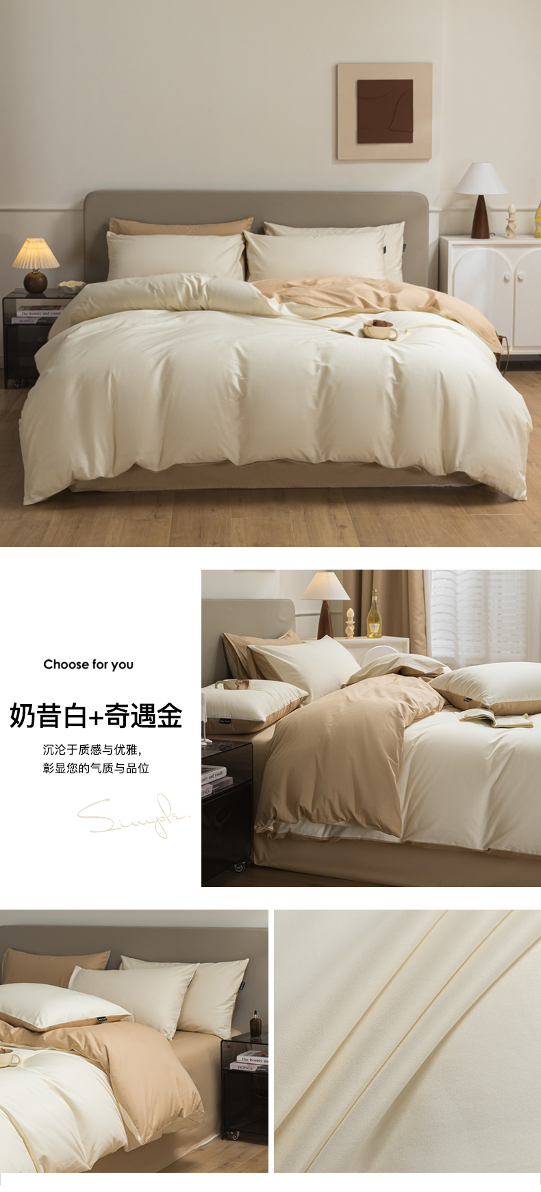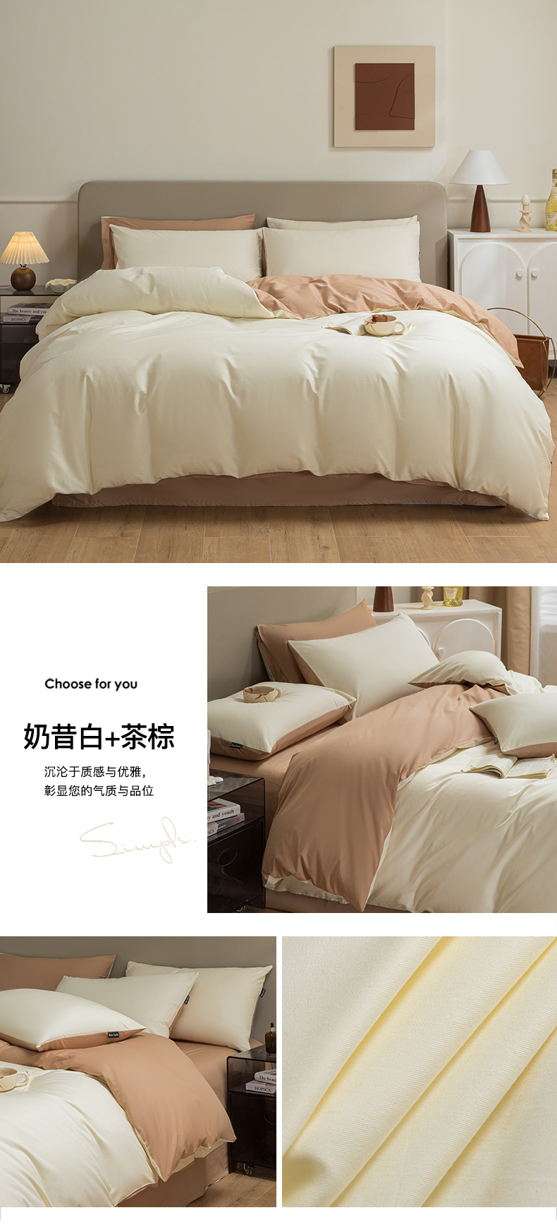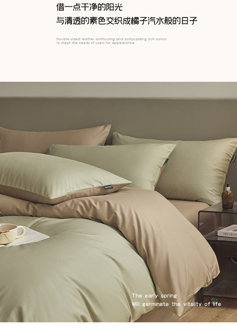 (总)卧趣家纺 2025新品全棉A类长绒棉纯色双拼四件套