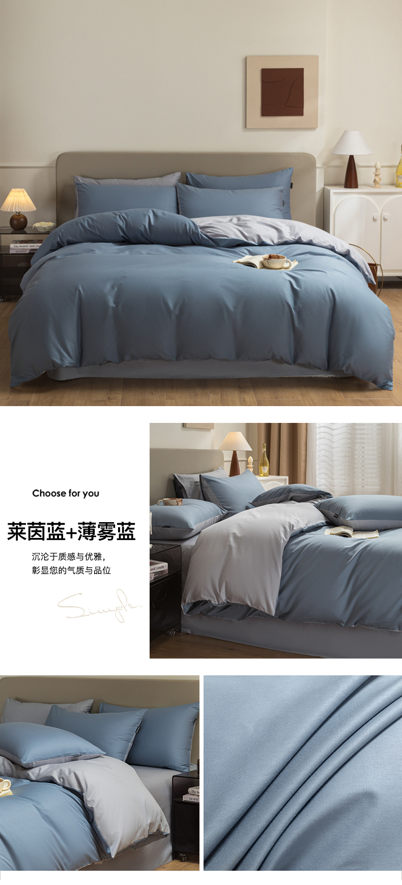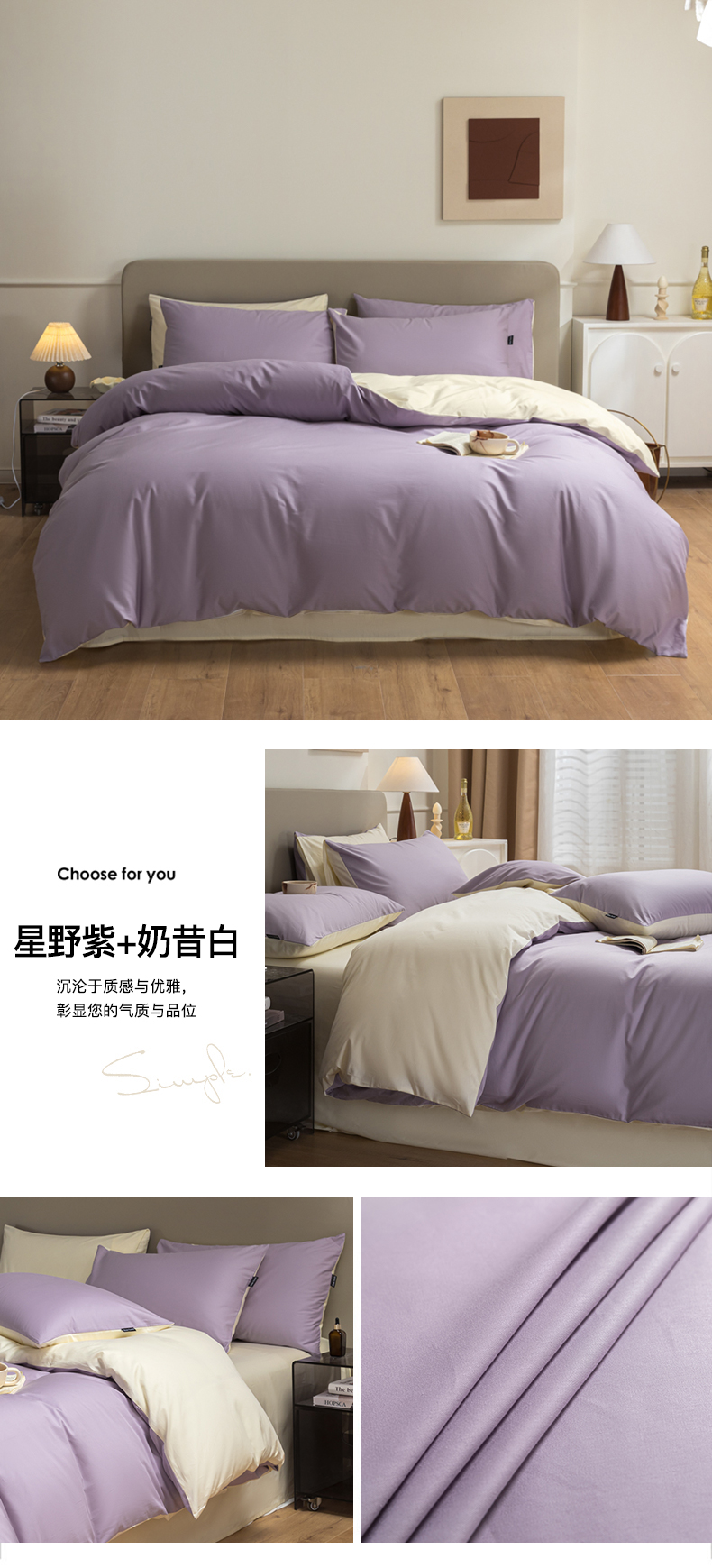 商品名称:(总)卧趣家纺 2025新品全棉A类长绒棉纯色双拼四件套