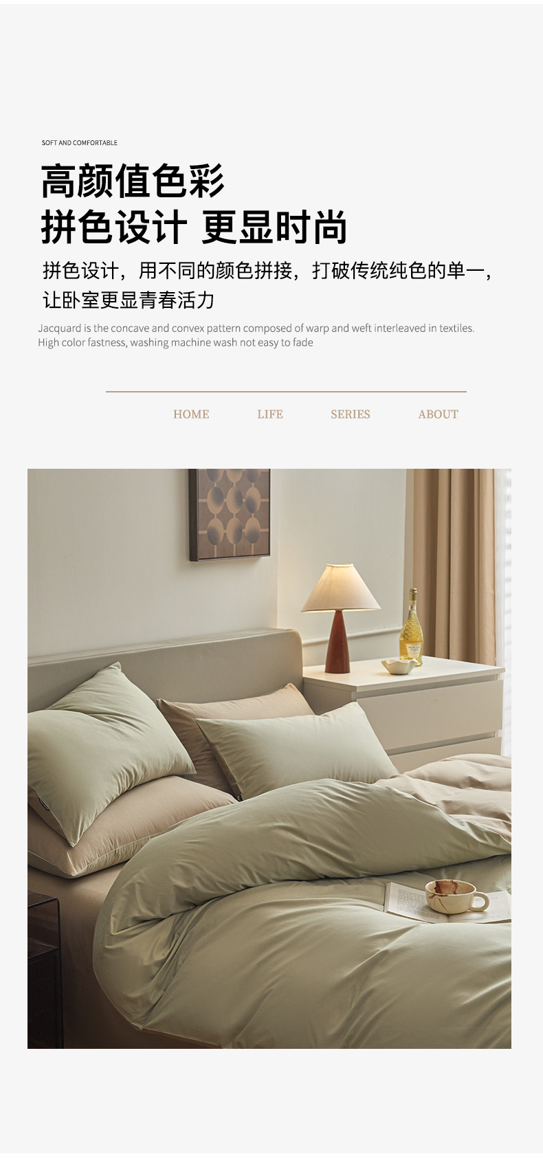 (总)卧趣家纺 2025秋冬新品棉麻提花全棉磨毛四件套-云缦系列,云缦-粉,云缦-灰,云缦-咖,云缦-绿,云缦-米,云缦-棕
