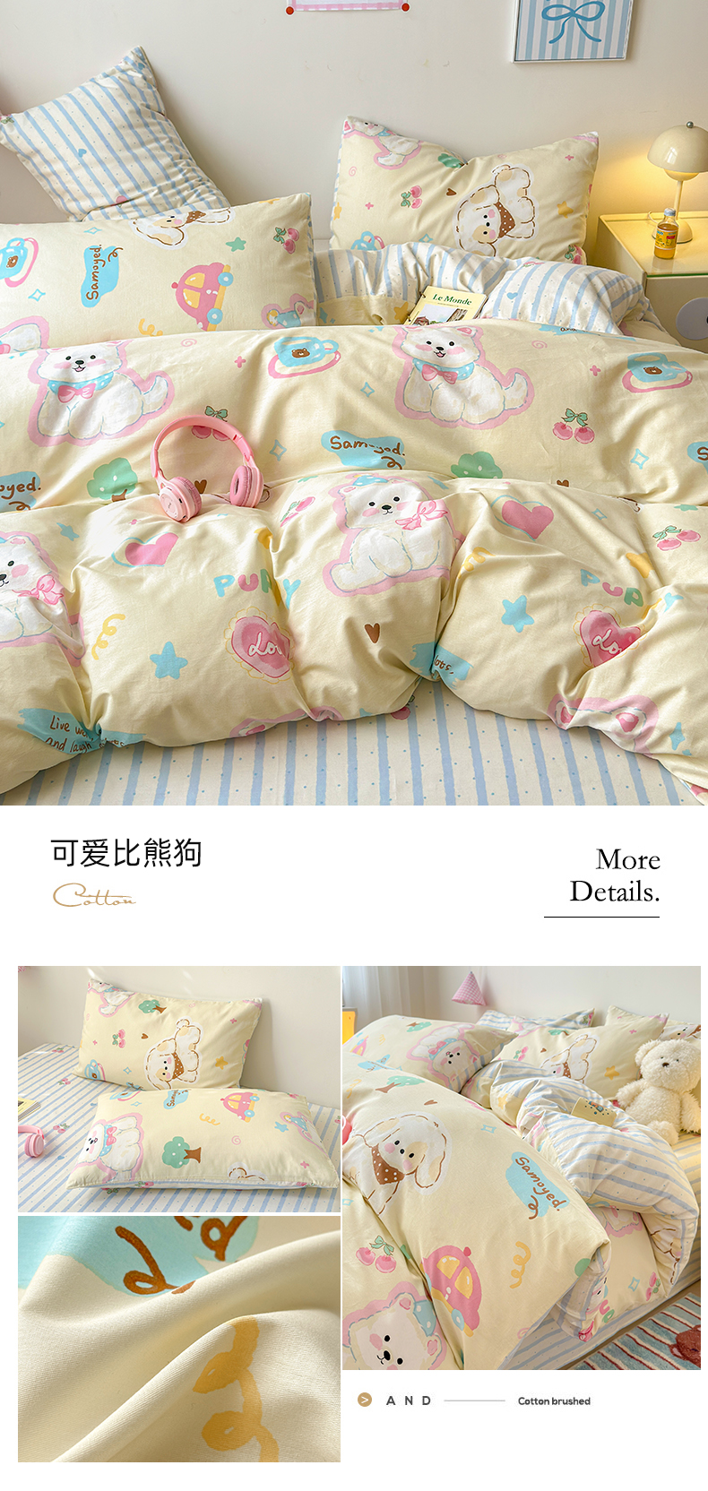 商品名称:曼之夏 2025新款全棉印花四件套 可爱比熊狗