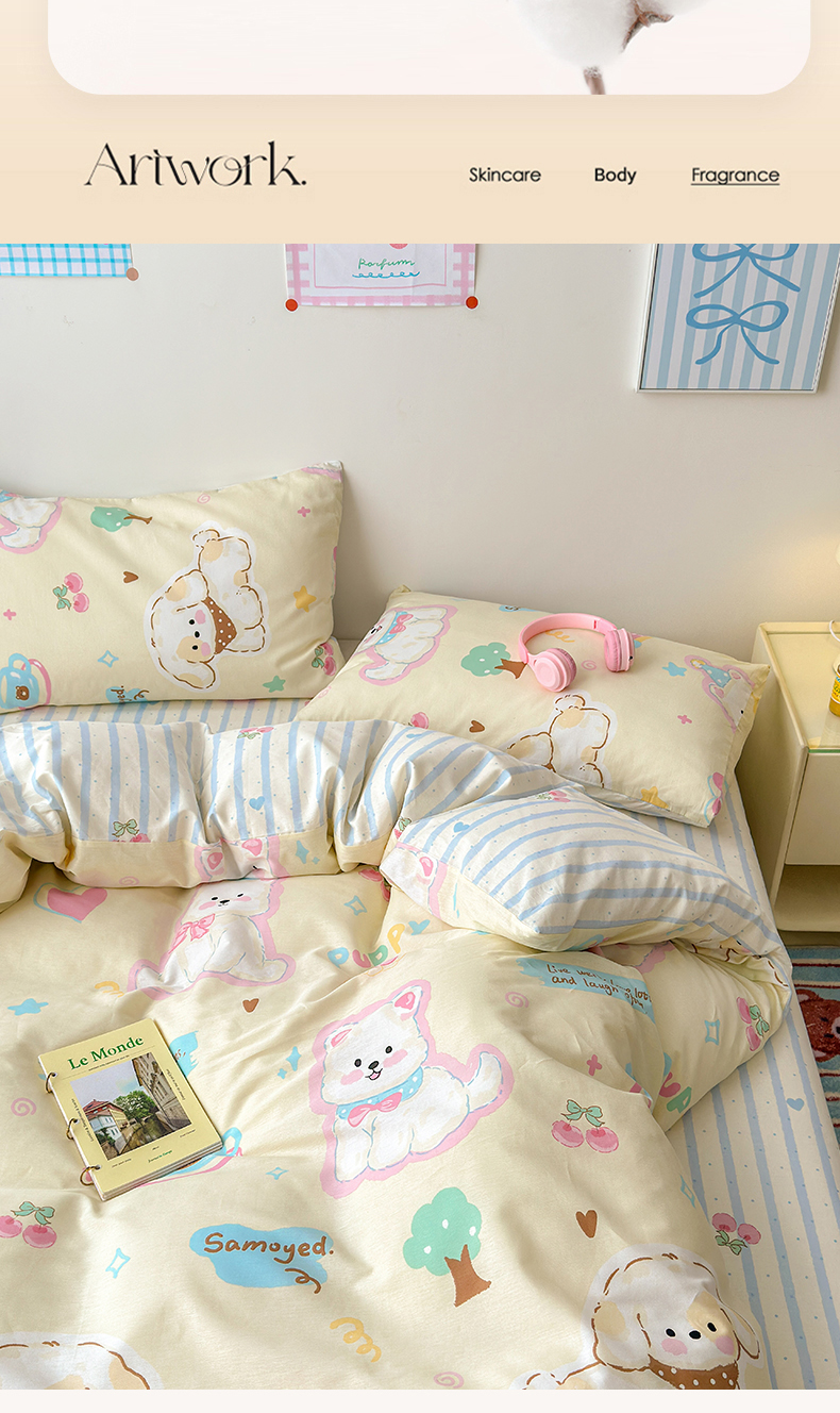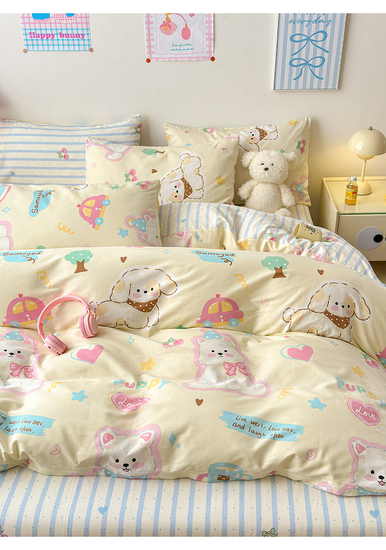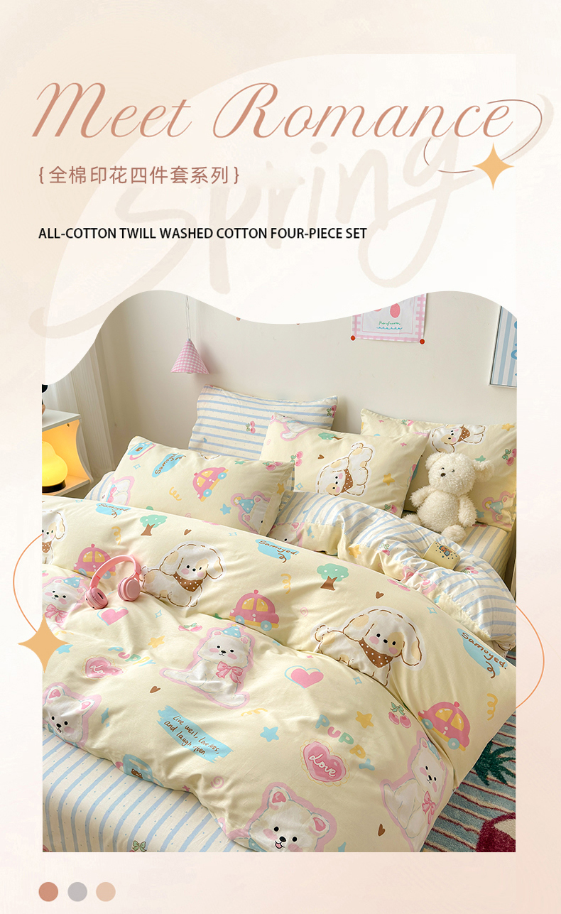 曼之夏 2025新款全棉印花四件套 可爱比熊狗