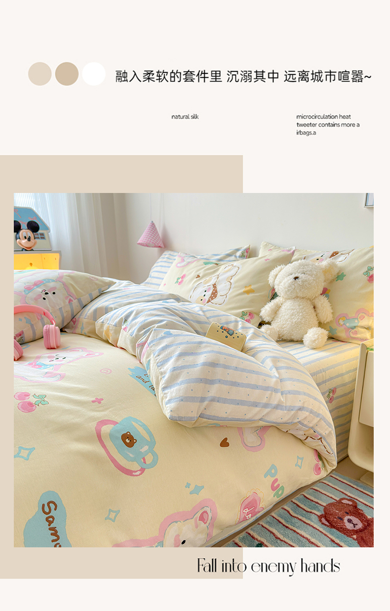 (总)曼之夏 2025新款原棉加厚磨毛印花四件套,比心,布鲁兔,春风十里,大都会,简兮,麦琪熊,麦语-灰,梦游记,眠时光,奇想,轻奢生活,塔维尔(米),甜心小熊,威斯丁,闲趣时光,意林(兰)