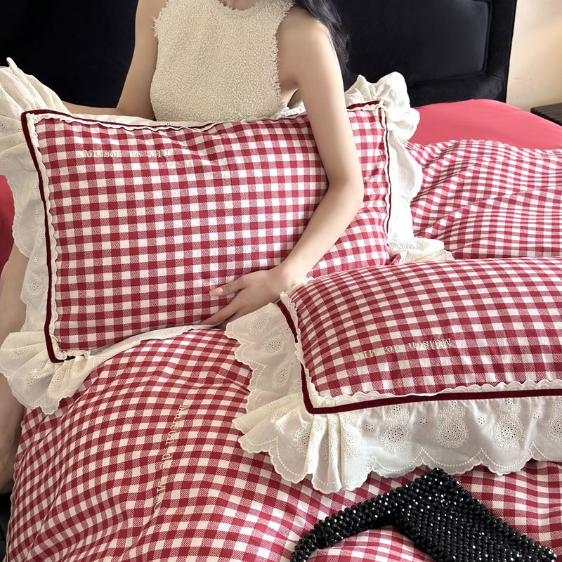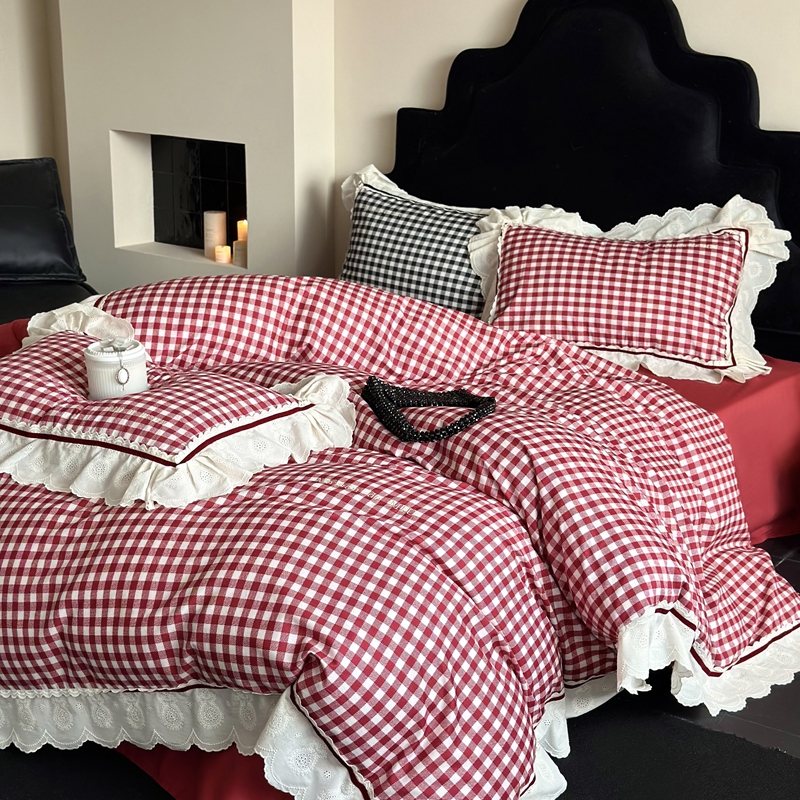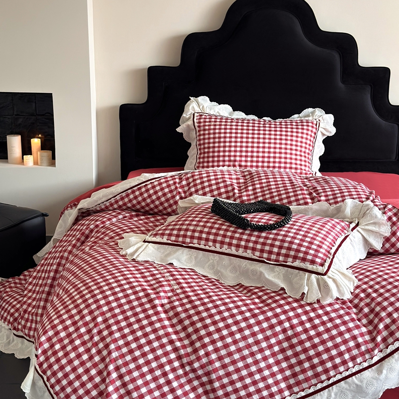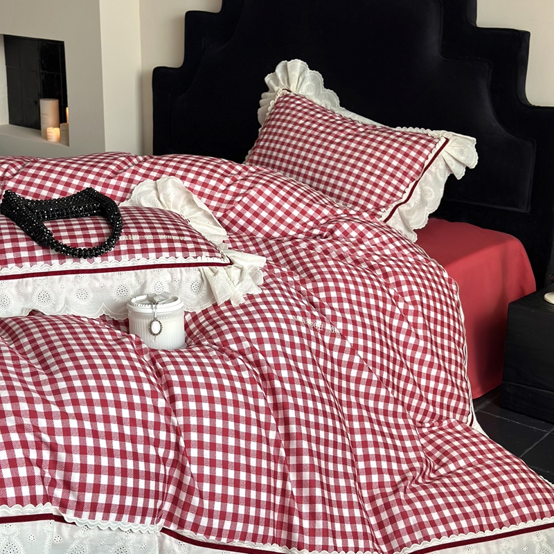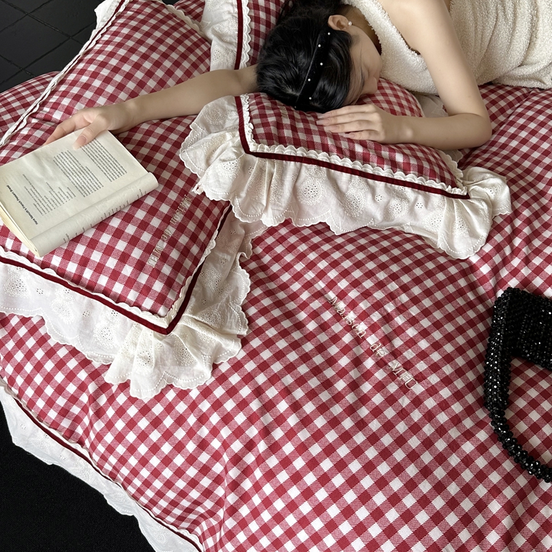 MIU缪家居 2025新款100支全棉磨毛四件套-漫时光 漫时光-红白格