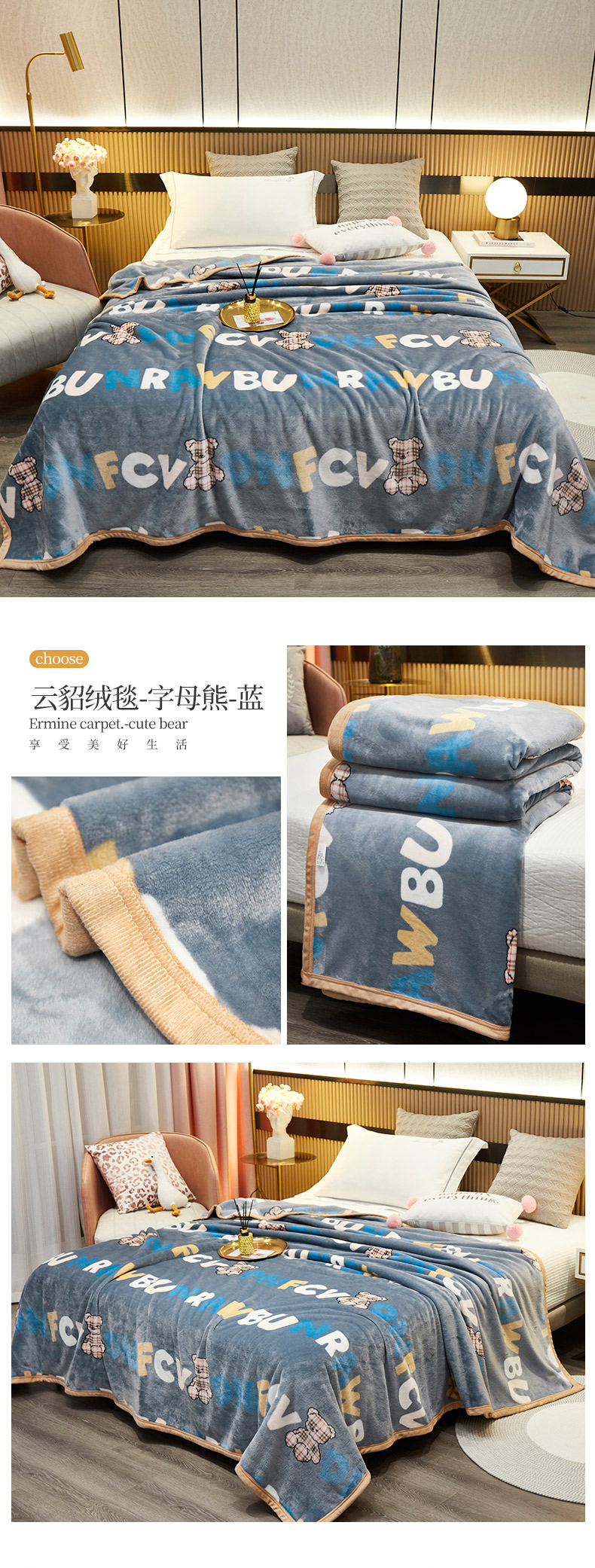 商品名称:2025新款云貂绒清仓特价毛毯 字母熊-蓝