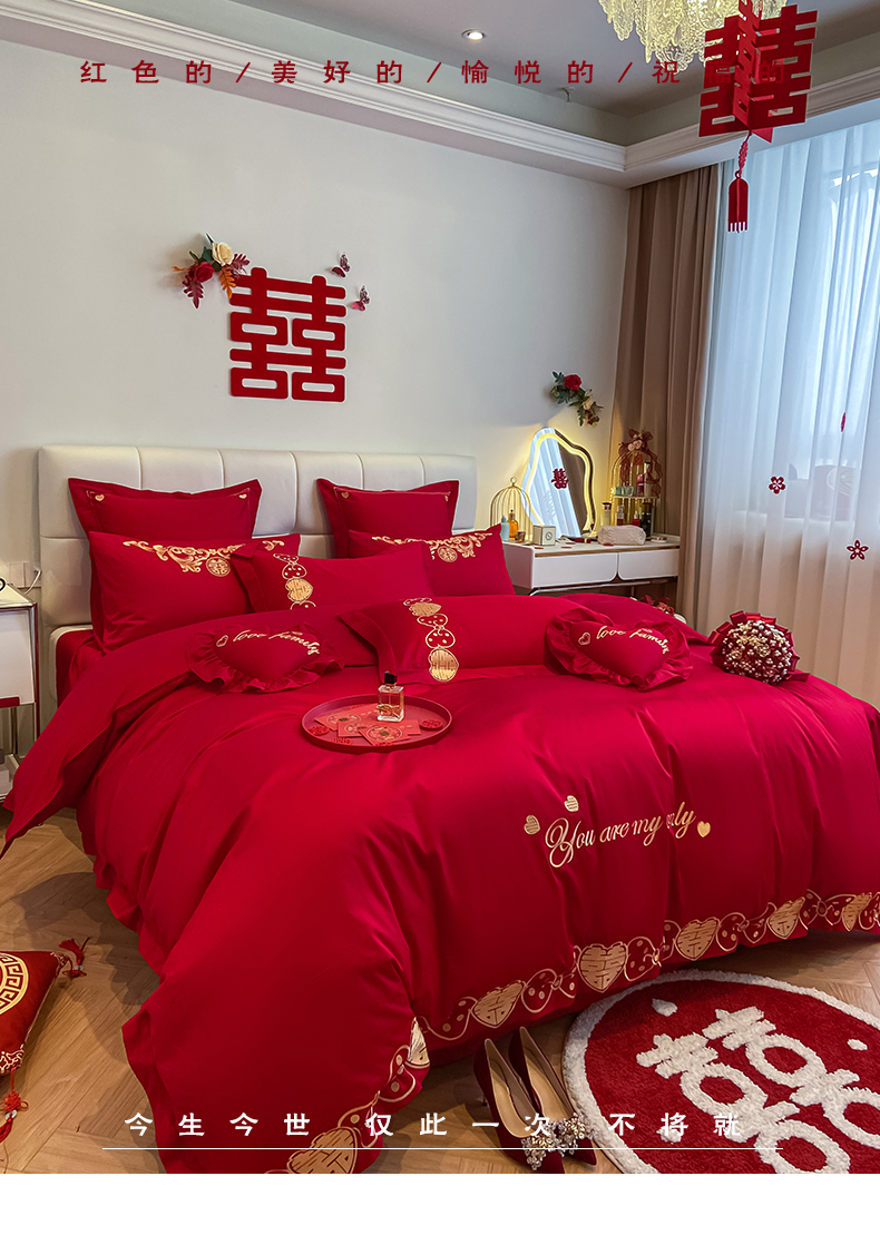 当前位置: 91家纺网 > 商品网购 > 床品套件 > 四件套 > 婚庆四件套 > 东方合美(原:皇家传奇) 2023新款小红书风格热款40S婚庆系列 甜