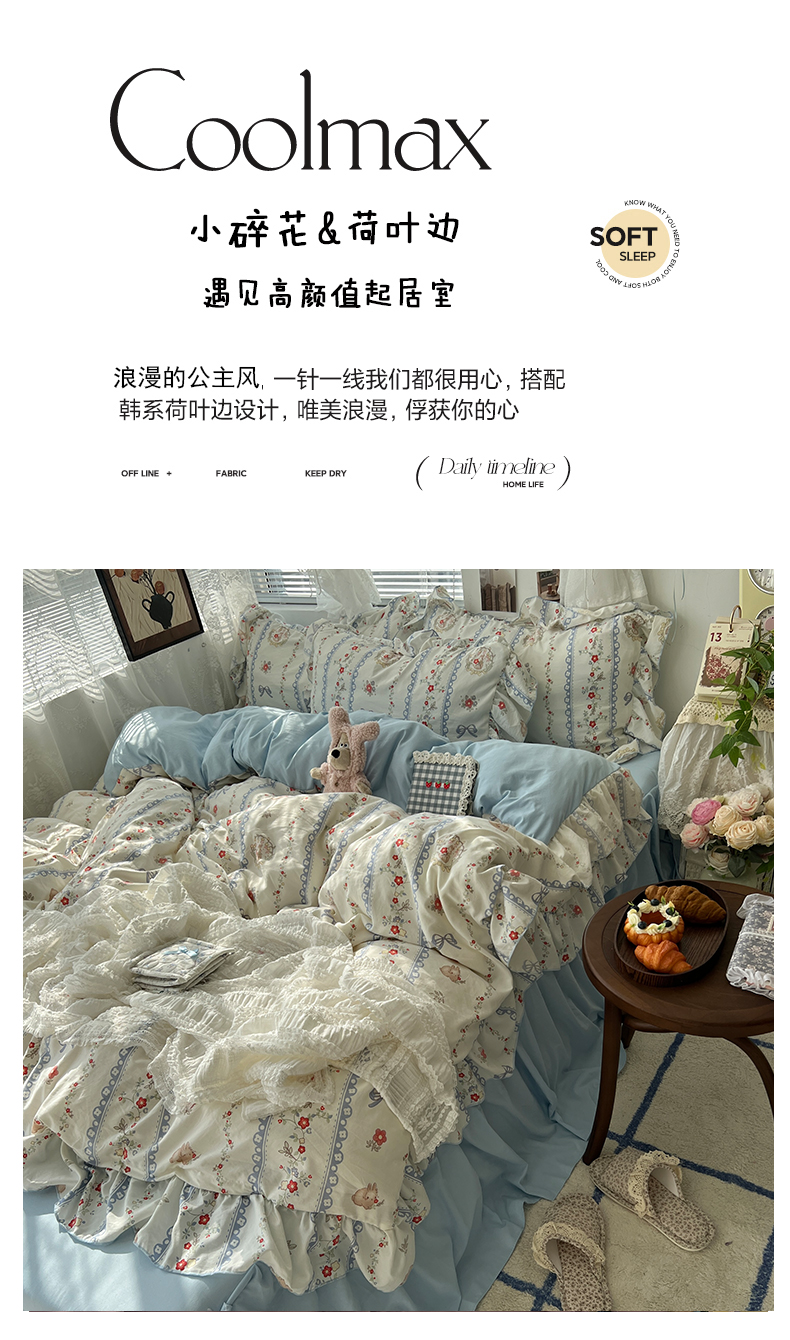 当前位置: 91家纺网 > 商品网购 > 床品套件 > 四件套 > 水洗棉四件套 > 原素 2025新款韩系小花卉花边水洗棉四件套 觅春