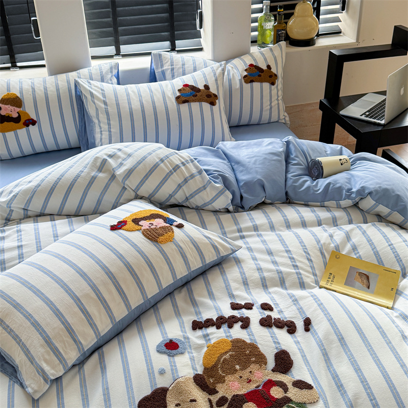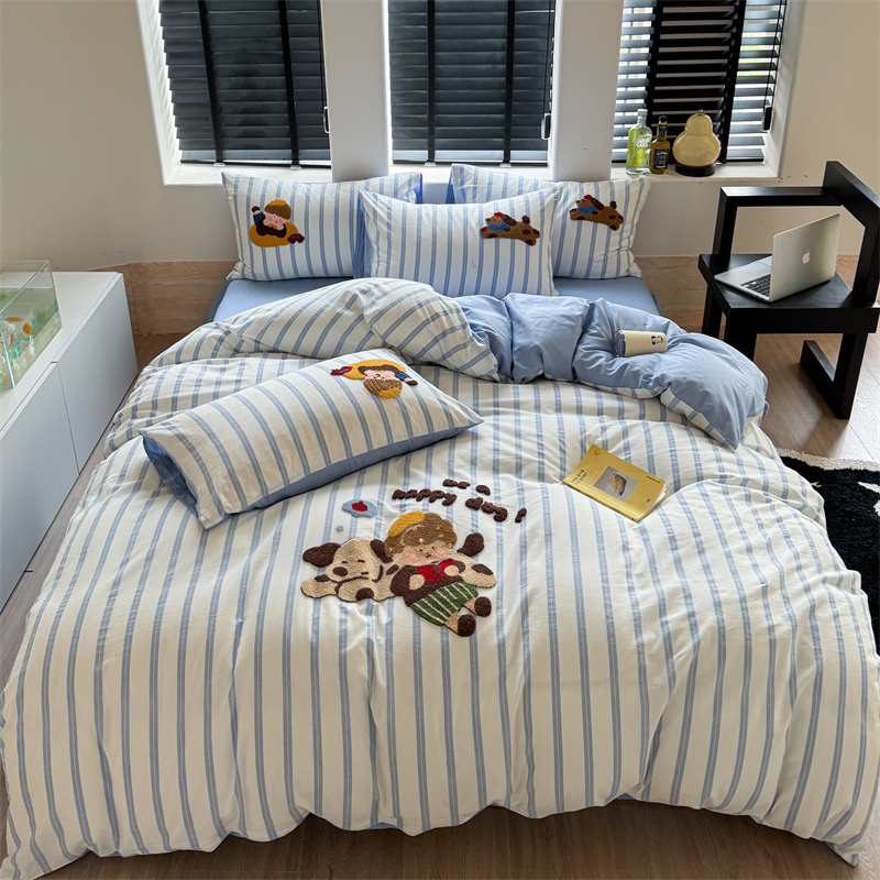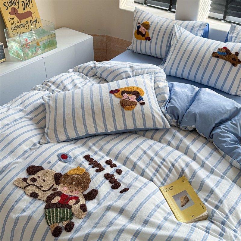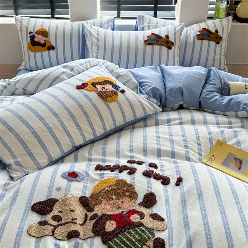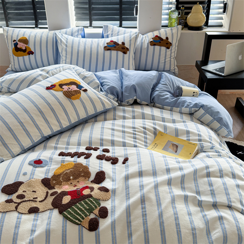 (总)暖生活 2025新款牛奶绒贴布绣工艺款床盖四件套 (会员-5元),排排队,小狗漫步