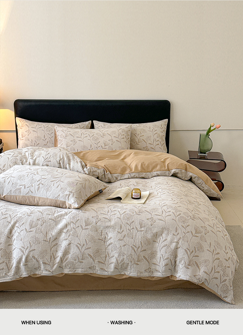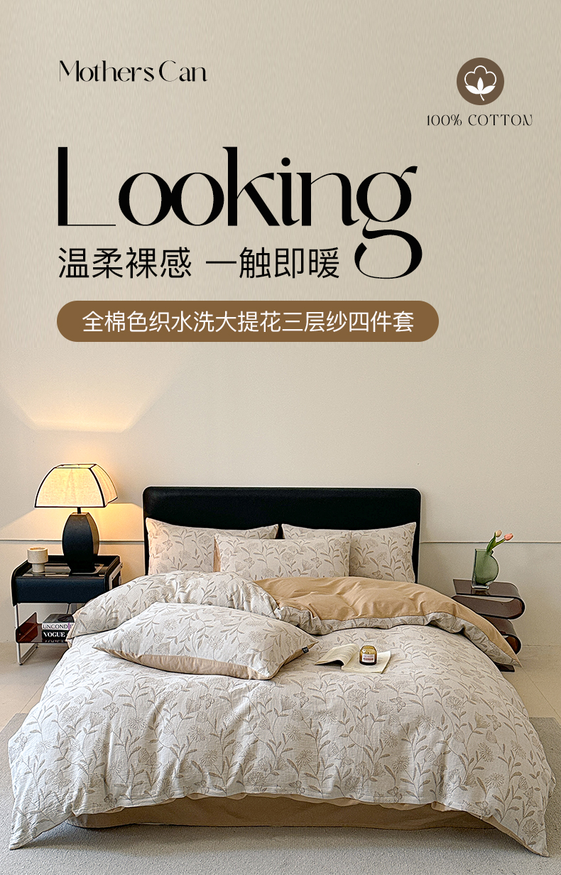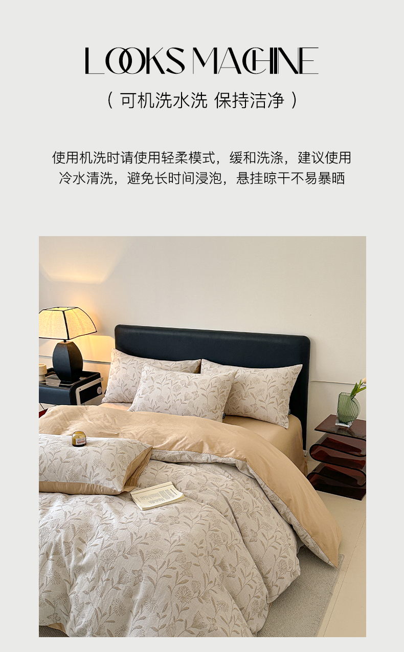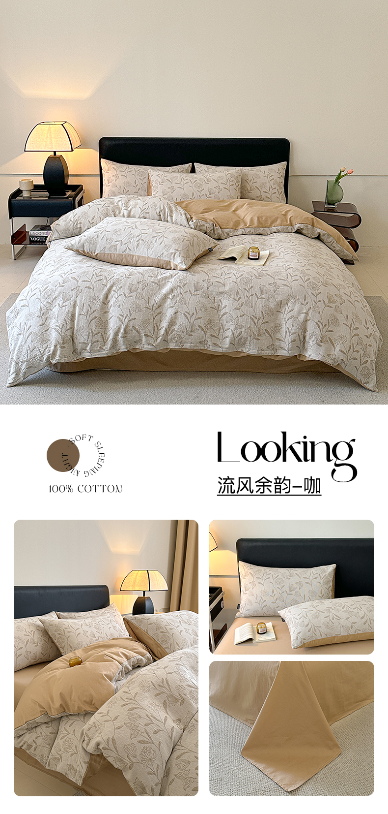 商品名称:格里芬家纺 2025新款全棉色织水洗三层纱提花纯棉四件套 流风余韵-咖