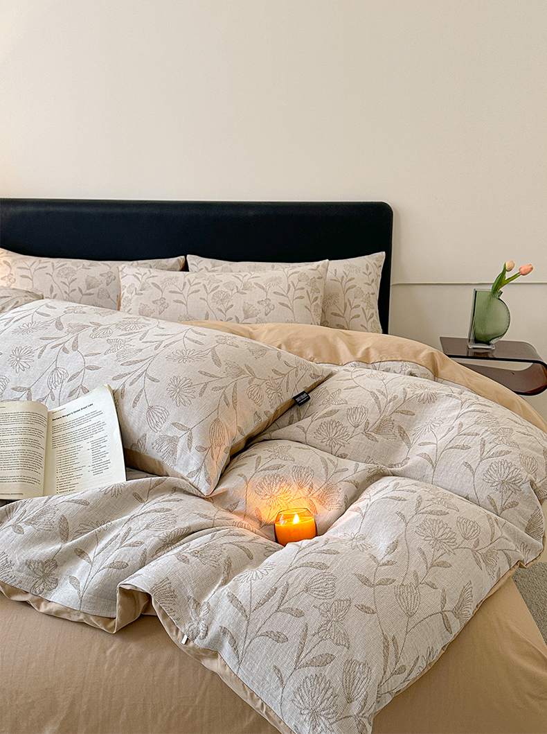 格里芬家纺 2025新款全棉色织水洗三层纱提花纯棉四件套 流风余韵-咖