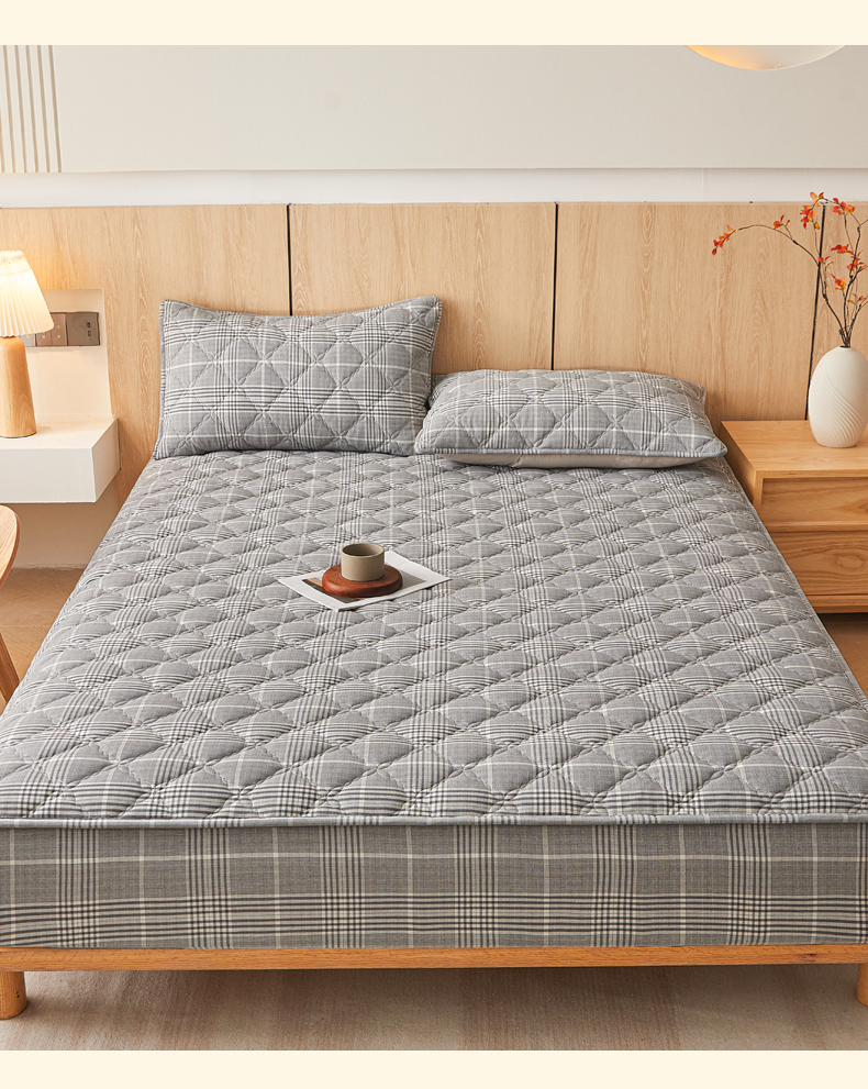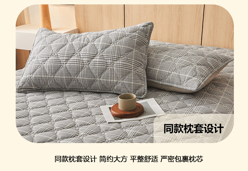 商品名称:糯米猪家纺 2025新款全棉色织水洗棉床笠 格纹灰