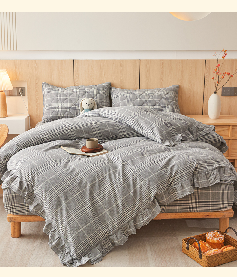 (总)糯米猪家纺 2025新款全棉色织水洗棉床裙,格纹 灰,简兮 兰,兰黄大格,晴空 灰,时尚 灰,雅致 兰