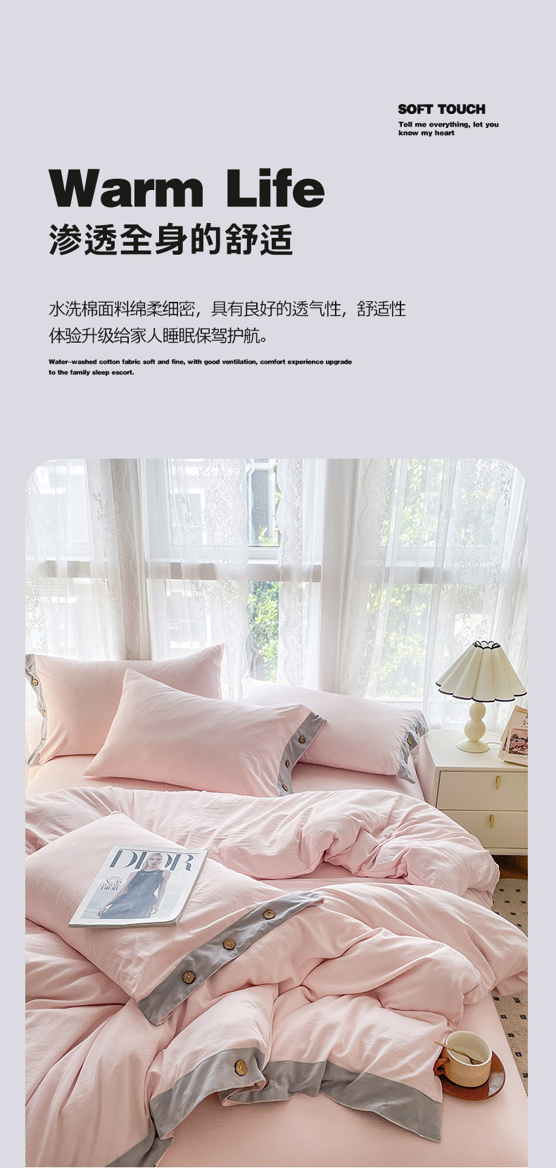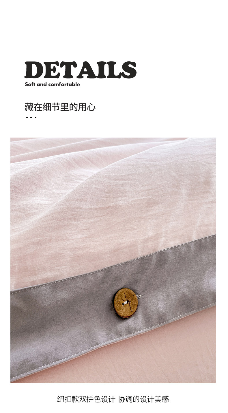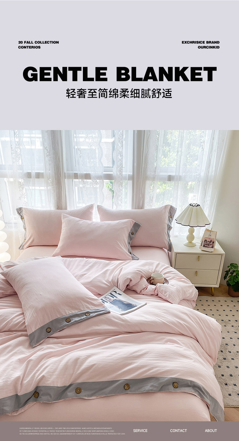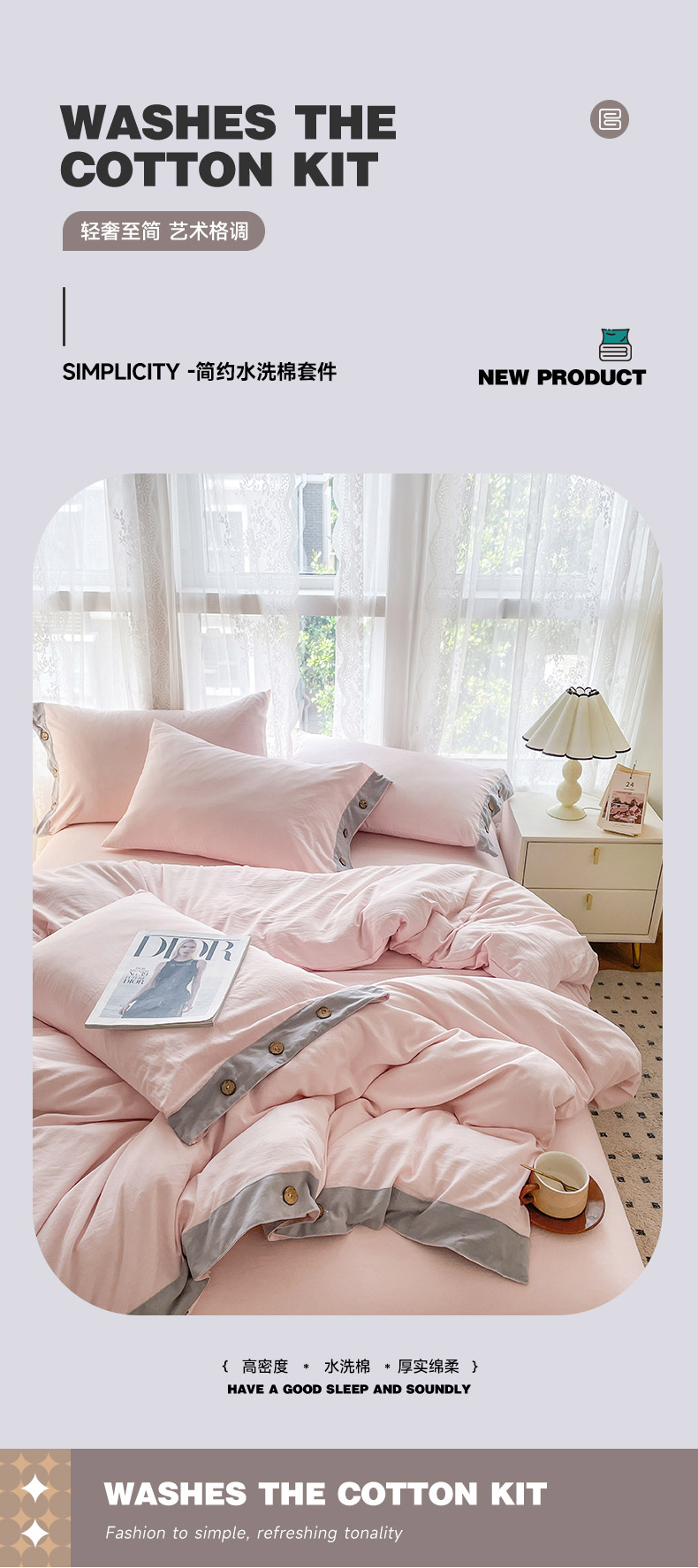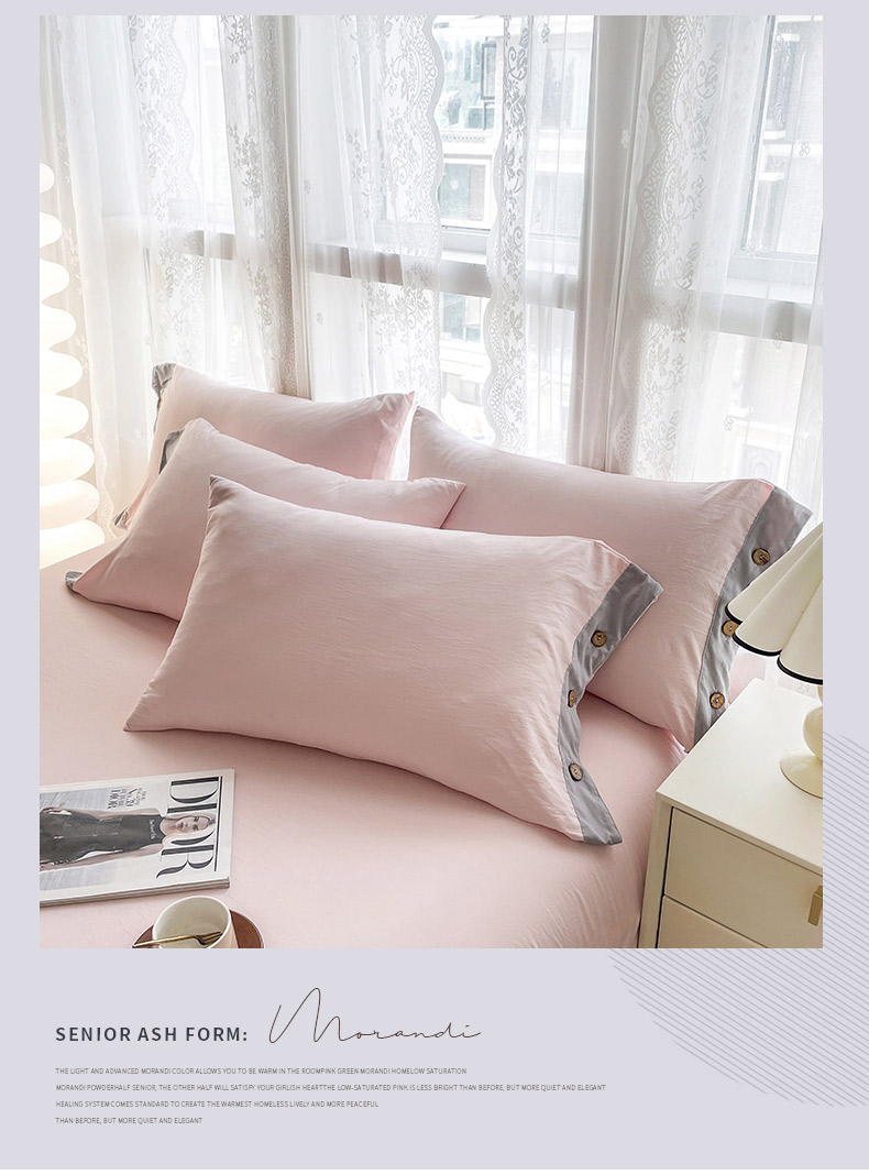 当前位置: 91家纺网 > 商品网购 > 床品套件 > 四件套 > 水洗棉四件套 > 库里梦家纺 2025新款贴边纽扣式纯色水洗棉四件套 贴边纽扣-少女粉