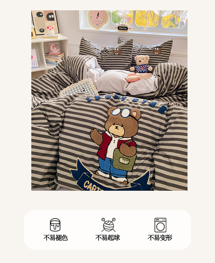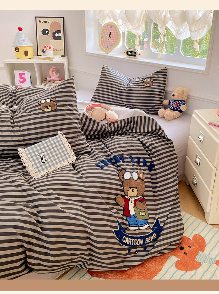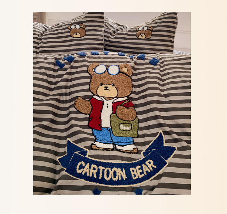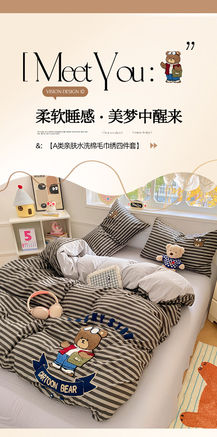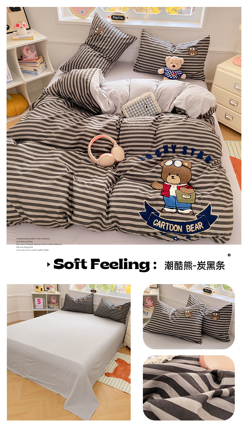 当前位置: 91家纺网 > 商品网购 > 床品套件 > 四件套 > 水洗棉四件套 > 优卡迪家纺馆 2025新款110克水洗棉无印风毛巾绣四件套【下载文件夹包含买家秀】 潮酷熊-炭黑条
