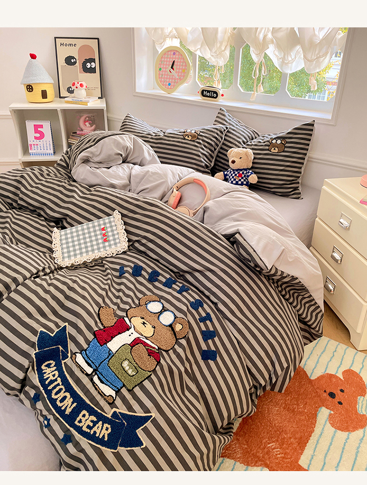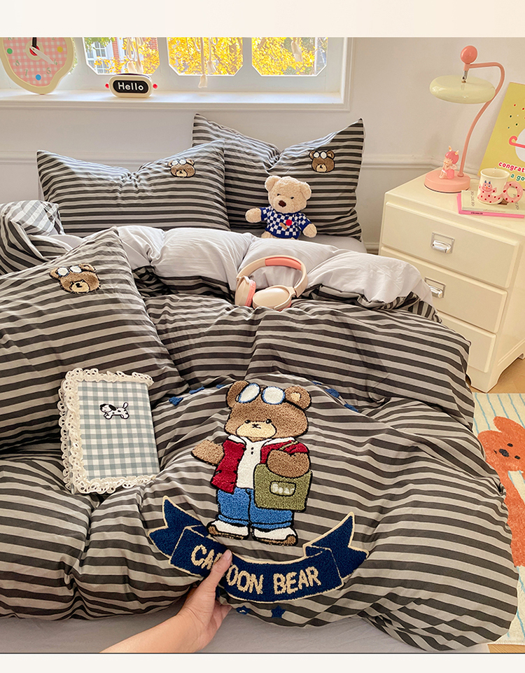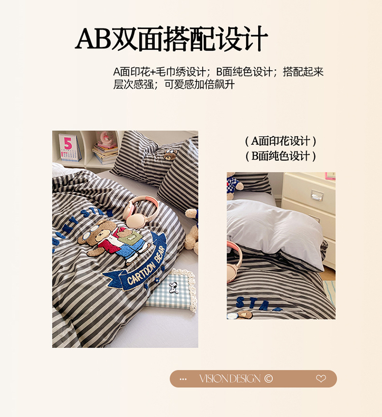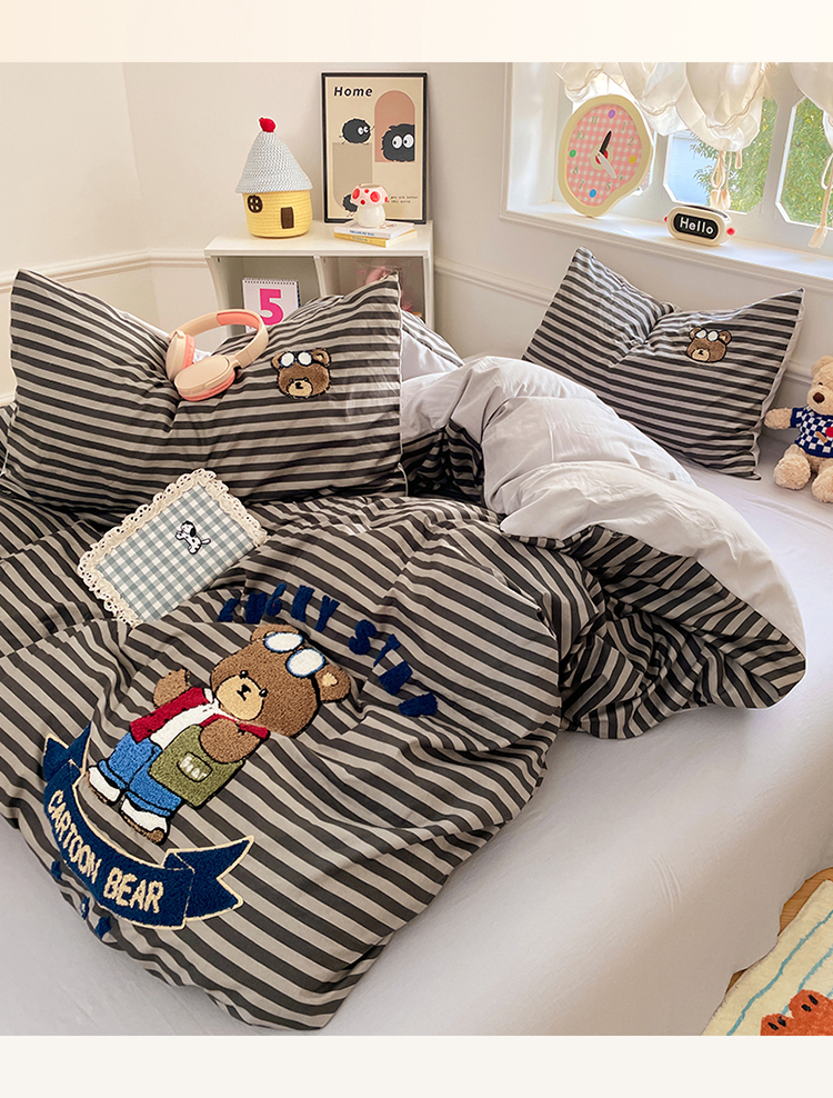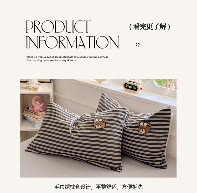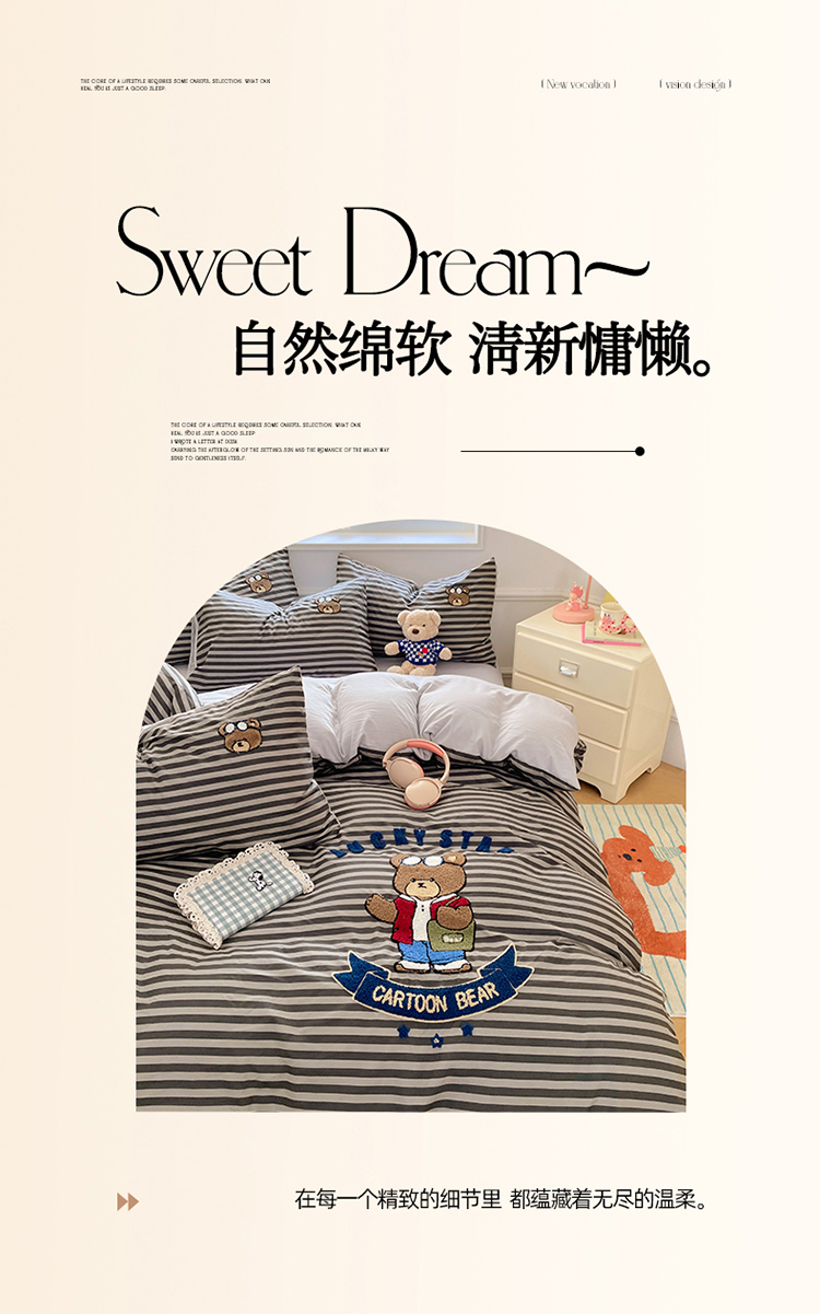 当前位置: 91家纺网 > 商品网购 > 床品套件 > 四件套 > 水洗棉四件套 > 优卡迪家纺馆 2025新款110克水洗棉无印风毛巾绣四件套【下载文件夹包含买家秀】 潮酷熊-炭黑条