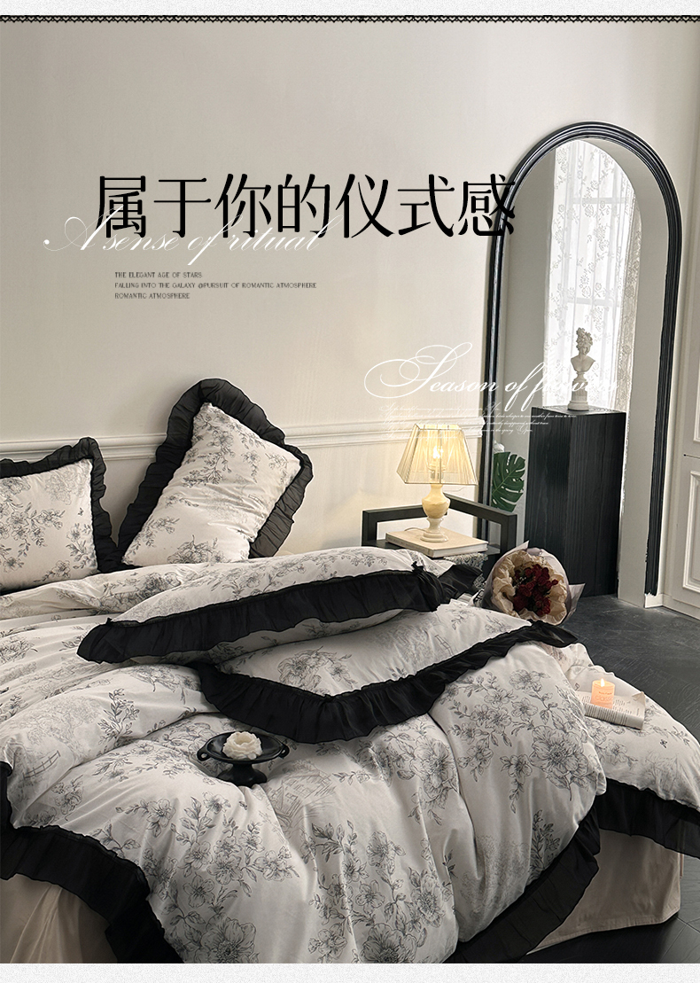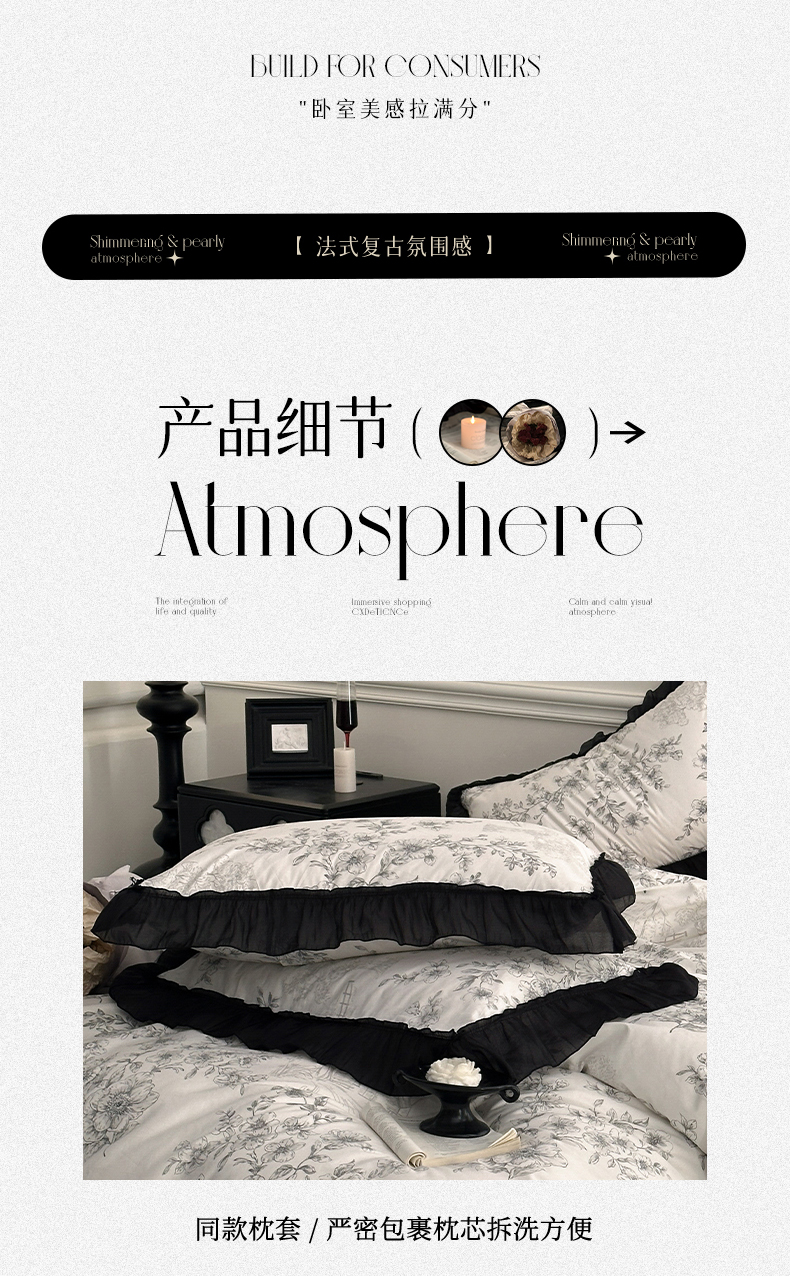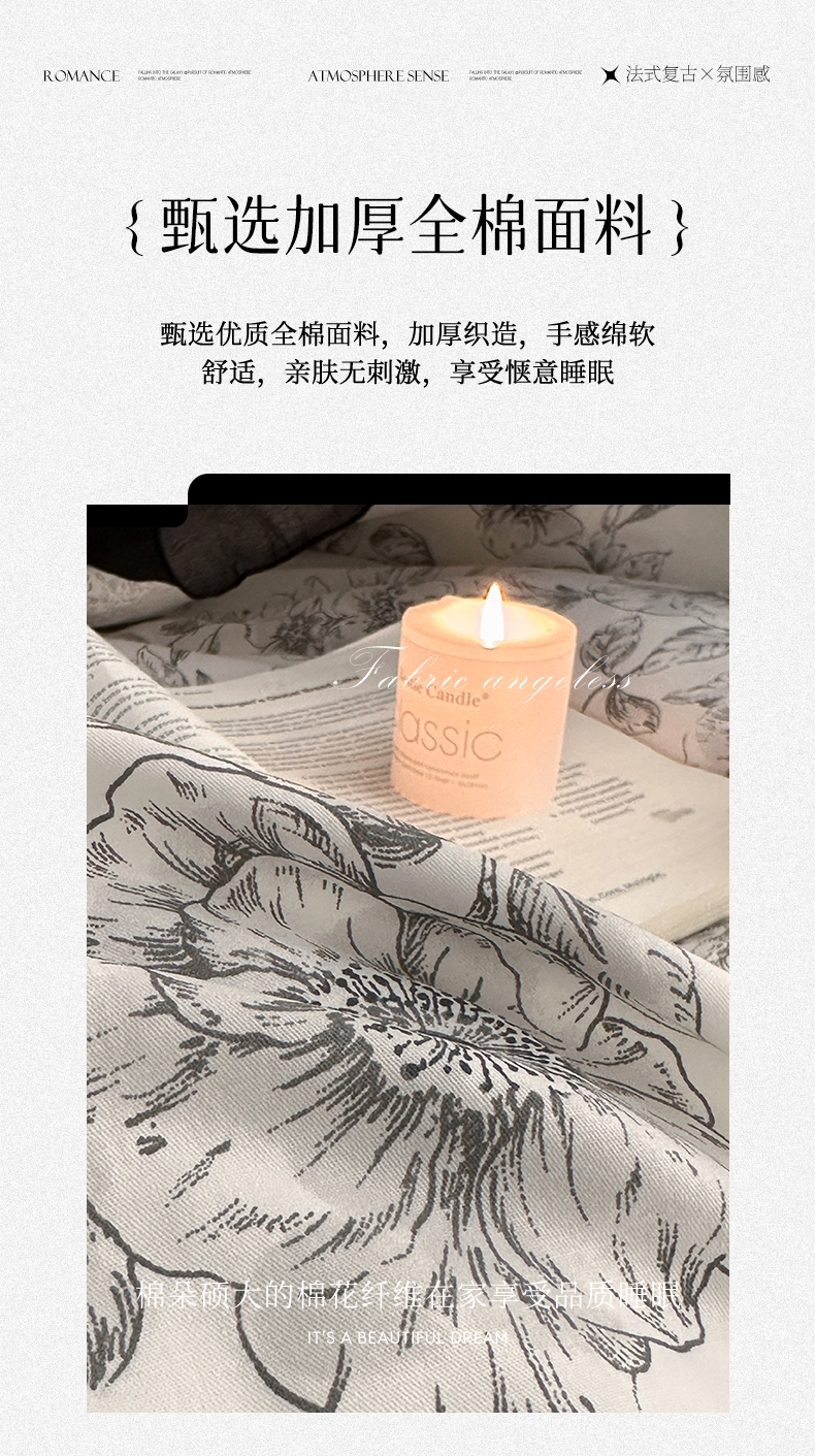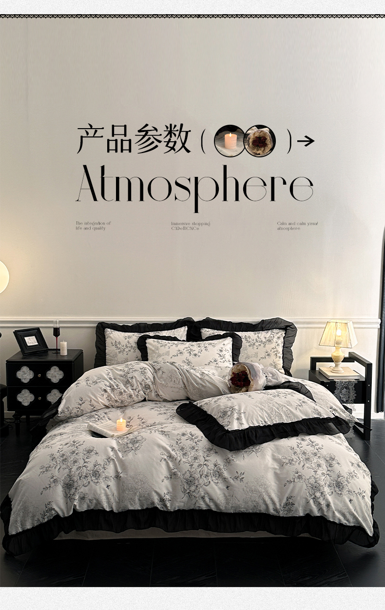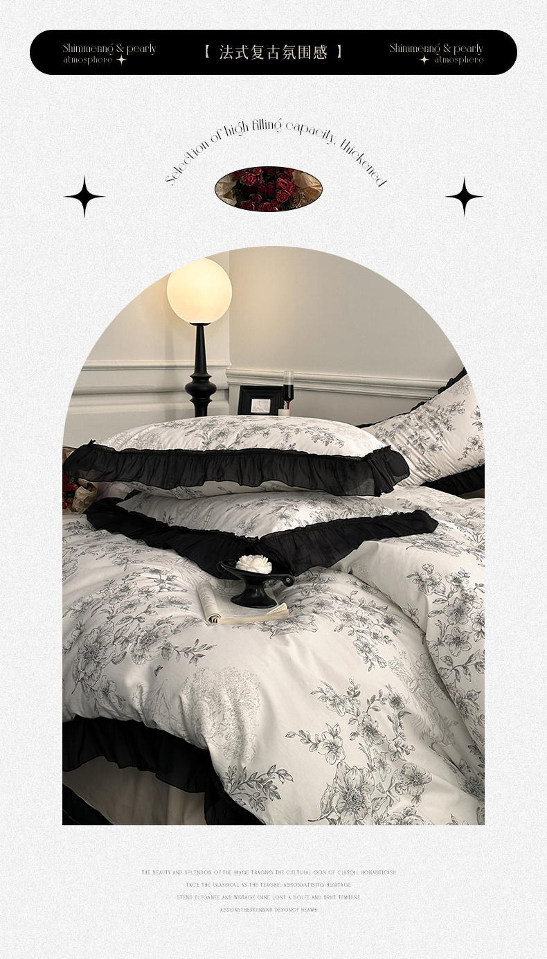 当前位置: 91家纺网 > 商品网购 > 床品套件 > 四件套 > 全棉普通四件套 > 蓝邻家纺 2025年新款全棉法式复古真丝绉花边四件套系列 加州风情