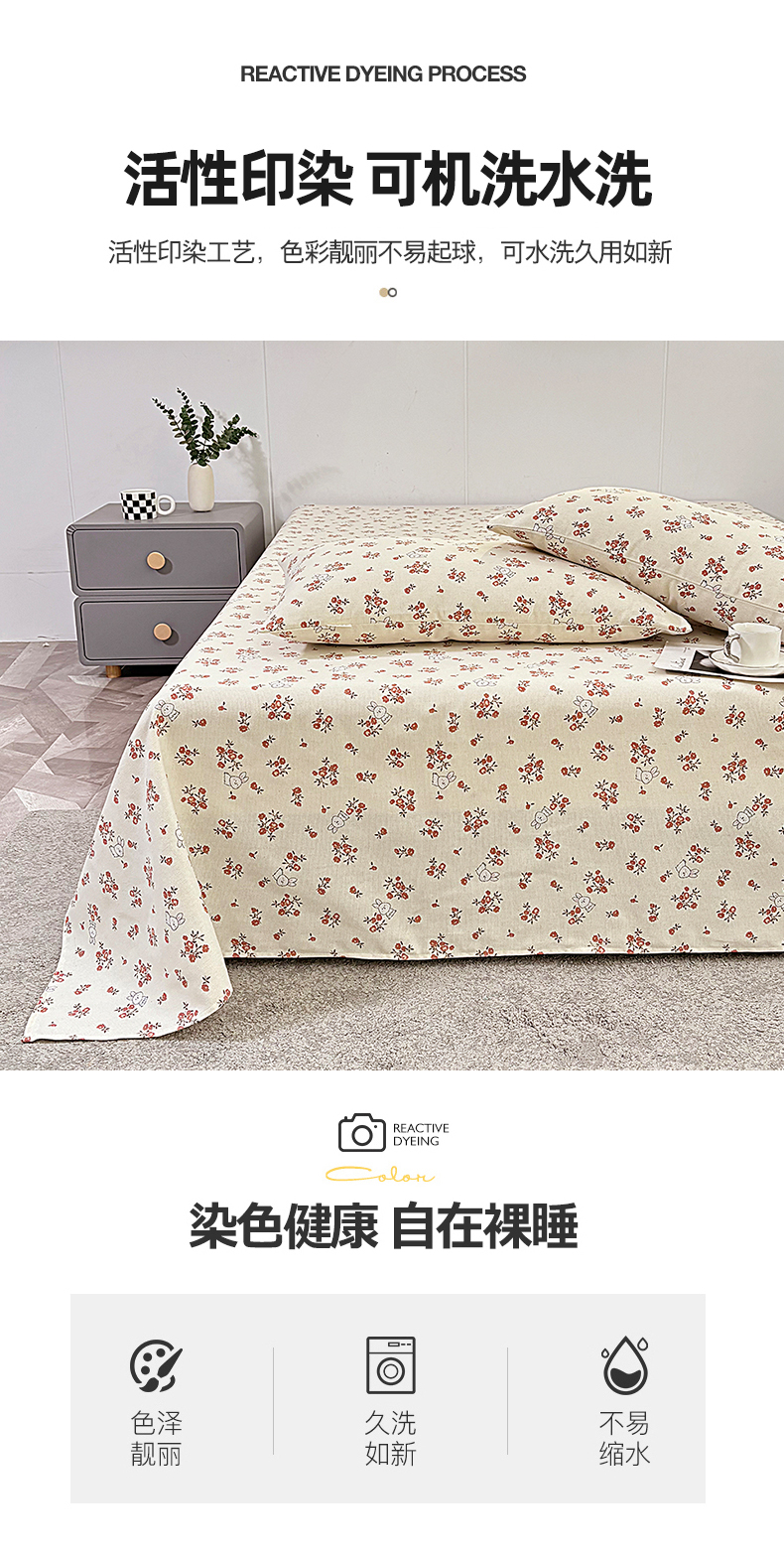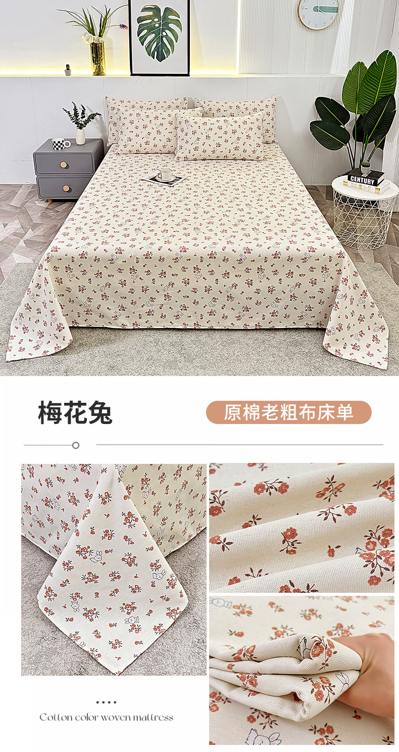 • 91家纺网 家纺一手货源 找家纺 伊而梦蚊帐 2025新款原棉老粗布床单 梅花兔