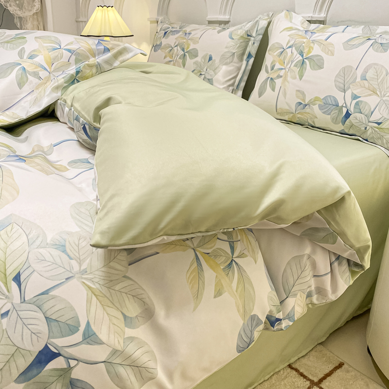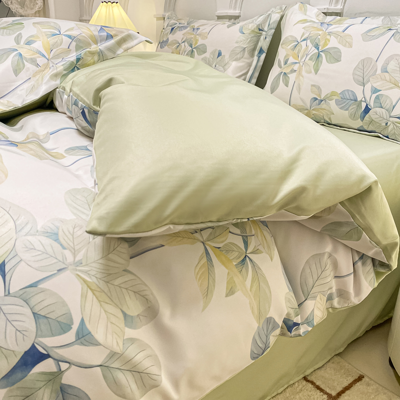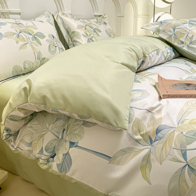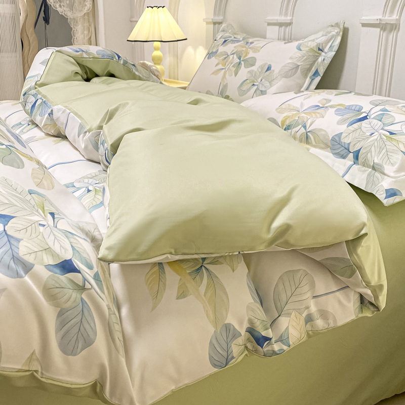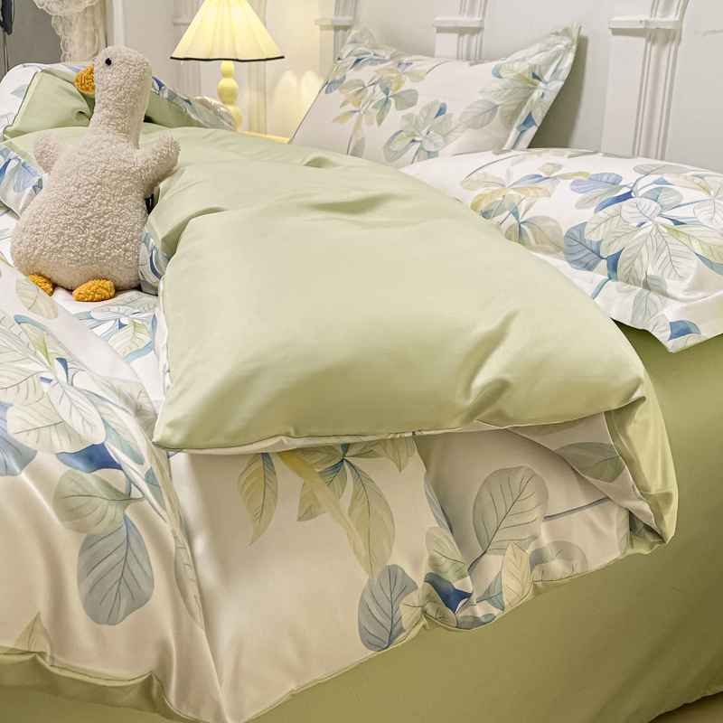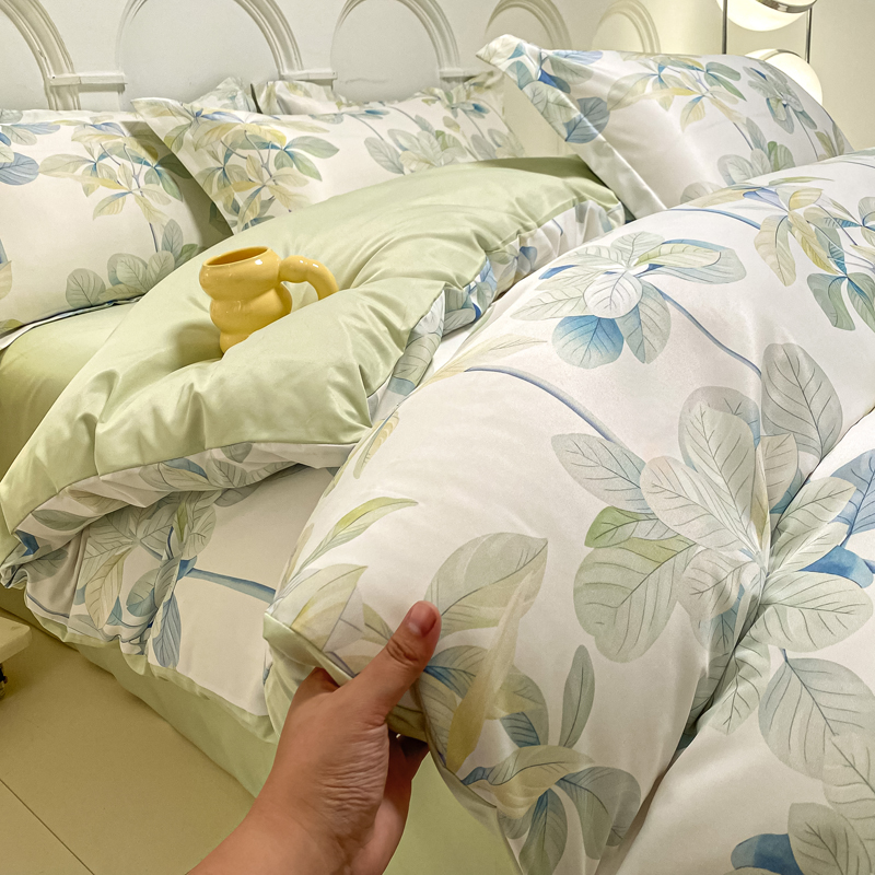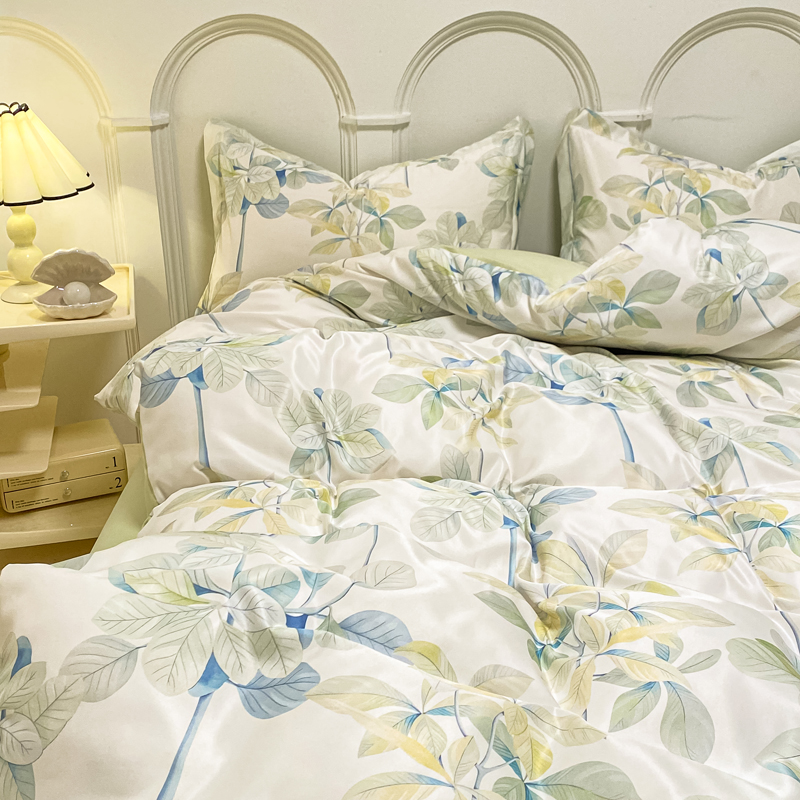 商品名称:悦织湾2025新款冰丝印花四件套美式数码轻奢时尚学生三件套宿舍单双人床上用品4件套 绿叶花园
