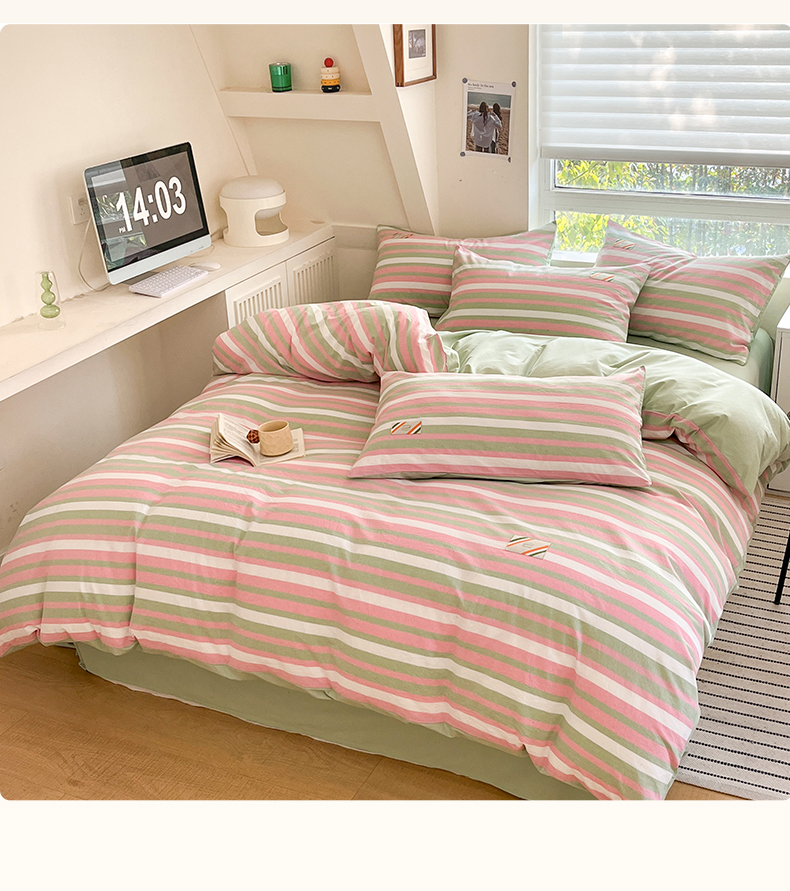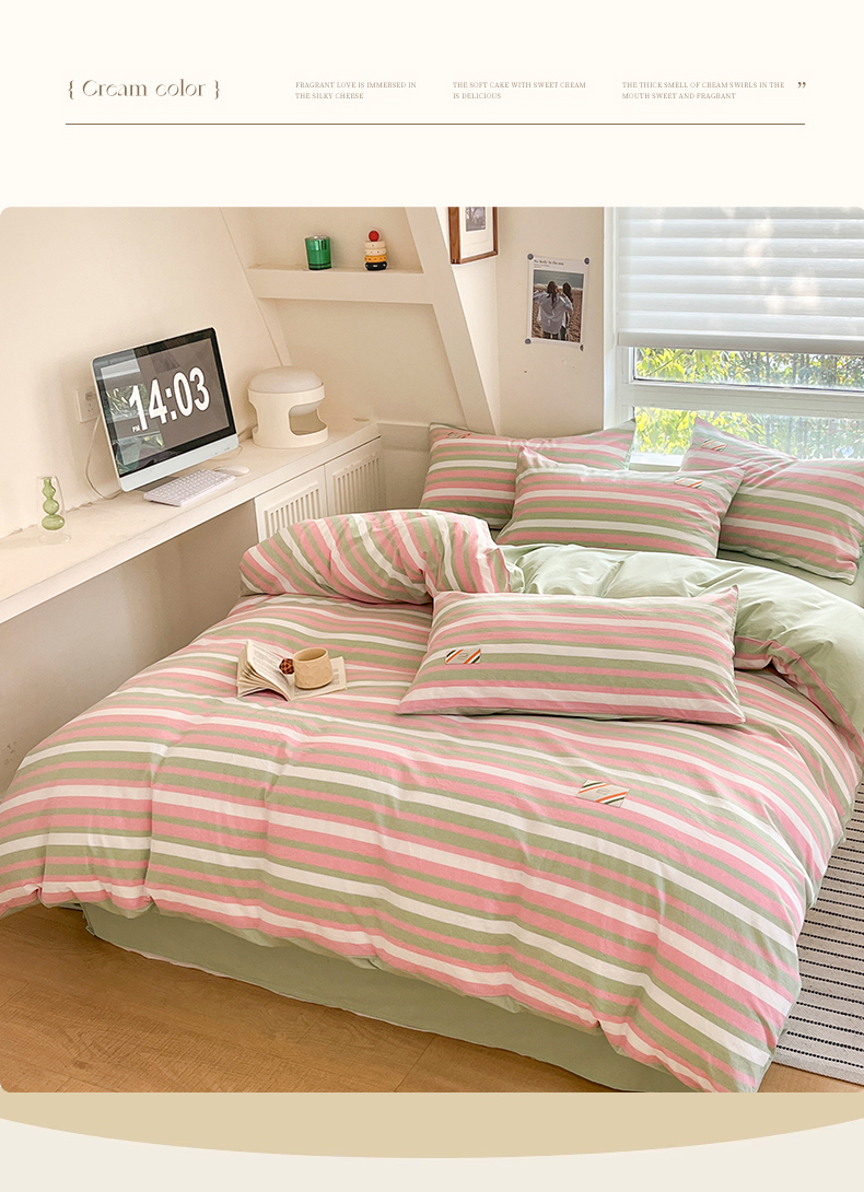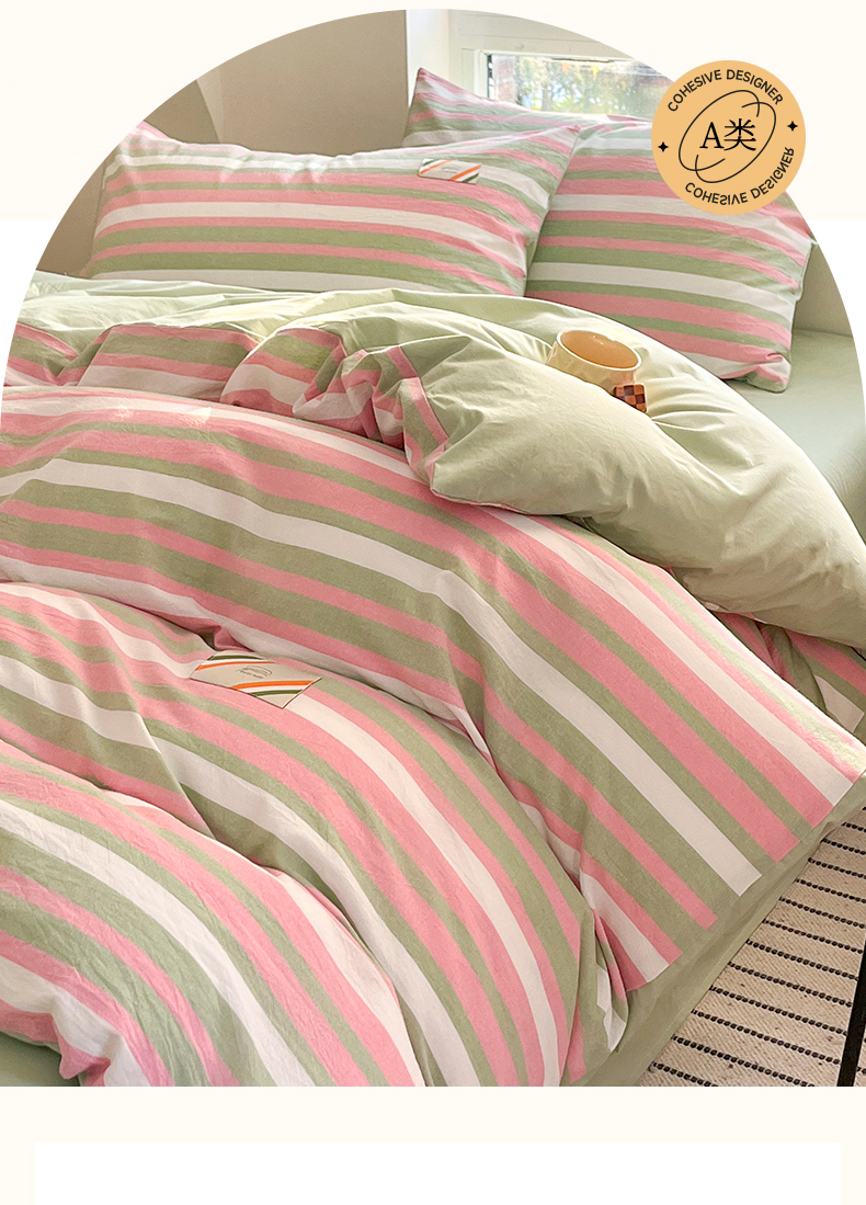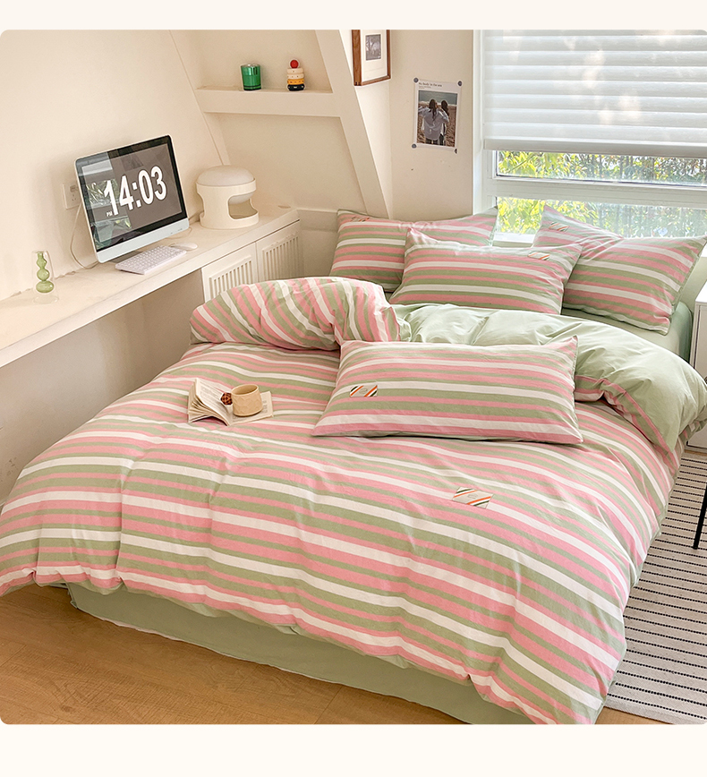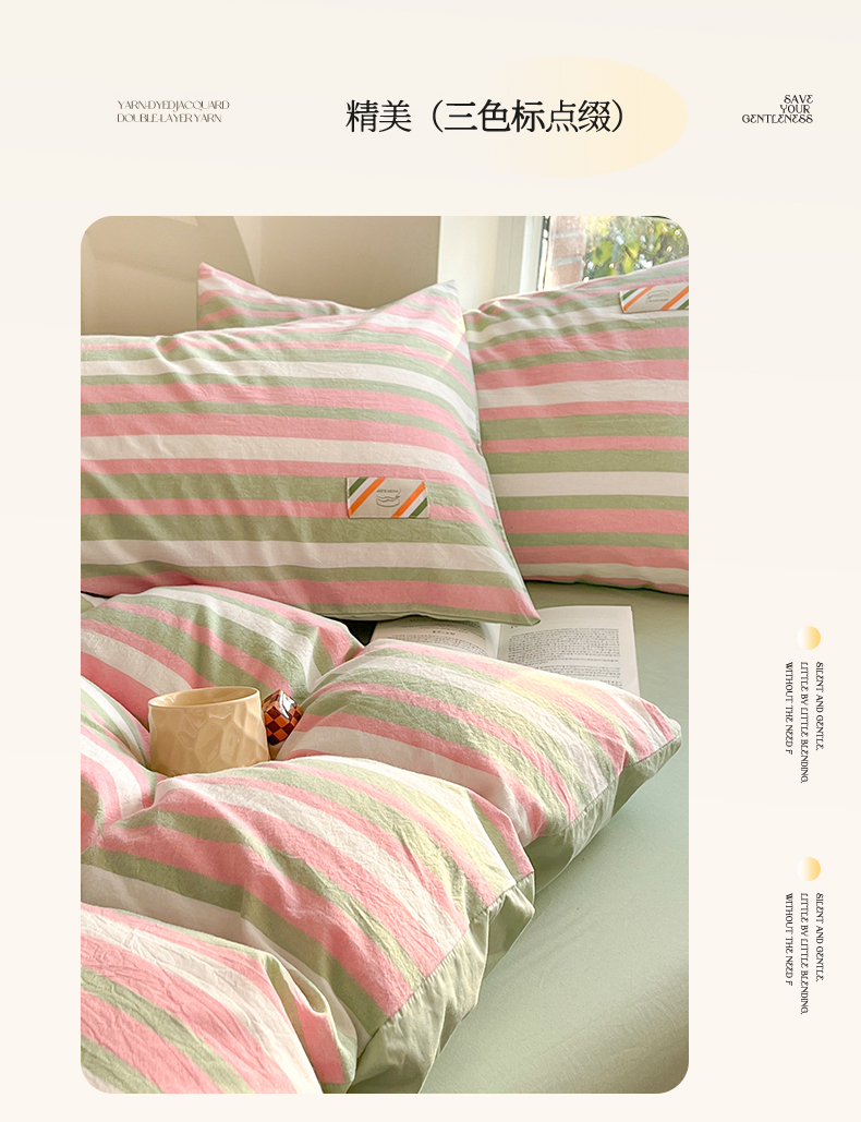 蓝米卡夫 2025新品-无印风全棉色织水洗棉四件套 七彩-粉芋